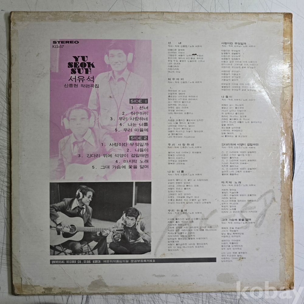 | 자켓상태 | VG : 주름, 접힘, 모서리 찢김 다수 | 음반상태 | VG : 생활 기스 다수, 가벼운 노이즈 존재 | 발매정보 | 초반 | 가사지여부 | 무 |