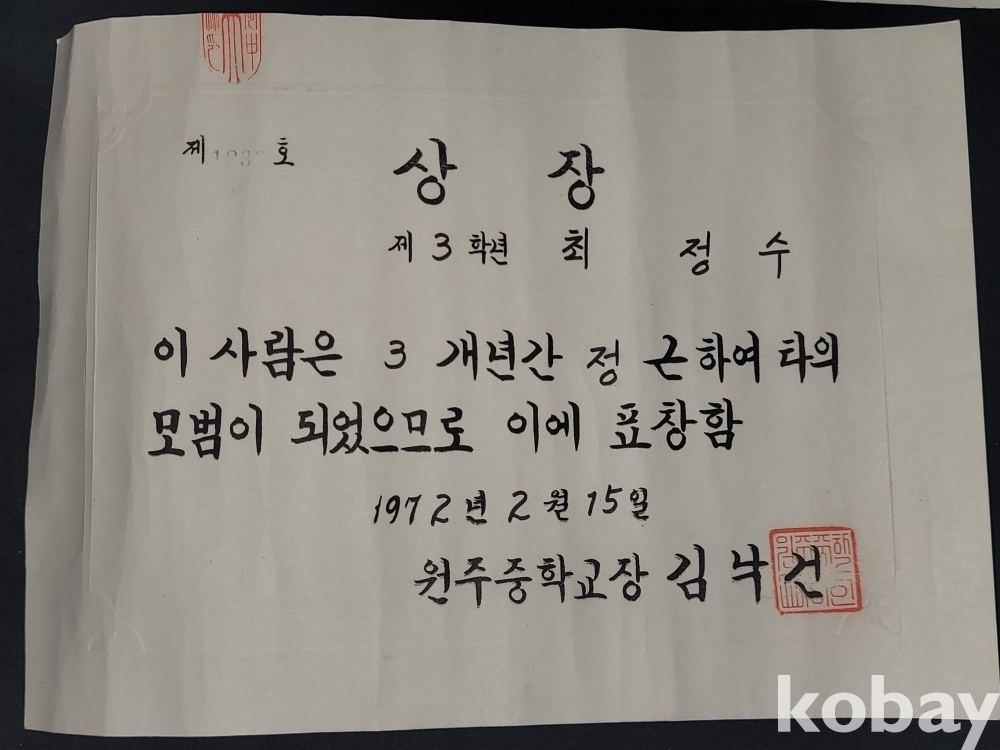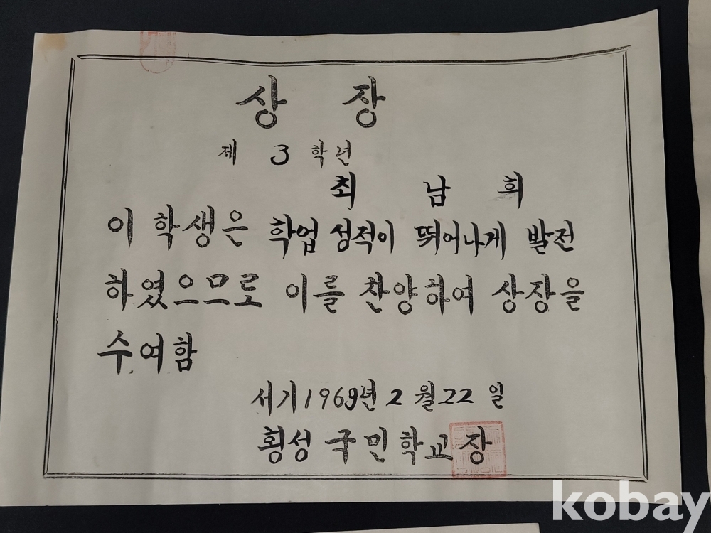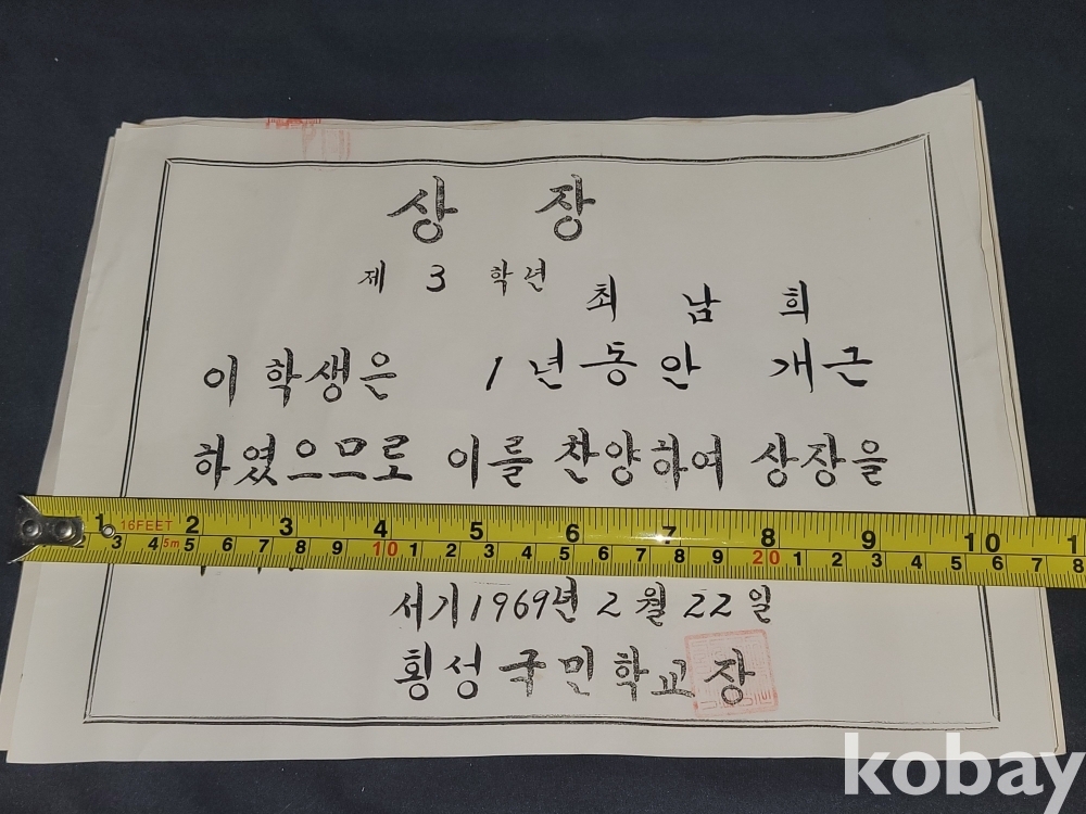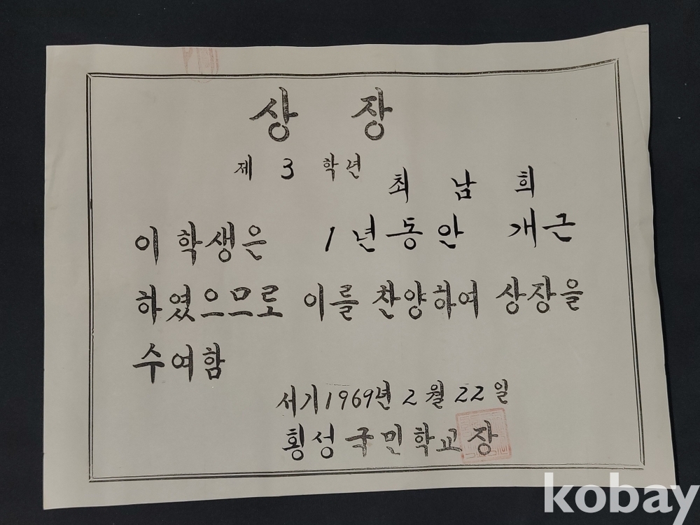 빈티지 세월 감이 느껴지는 1969년 횡성국민학교 상장 3장, 1972년 원주중학교 상장 1장 등 4종 일괄입니다.