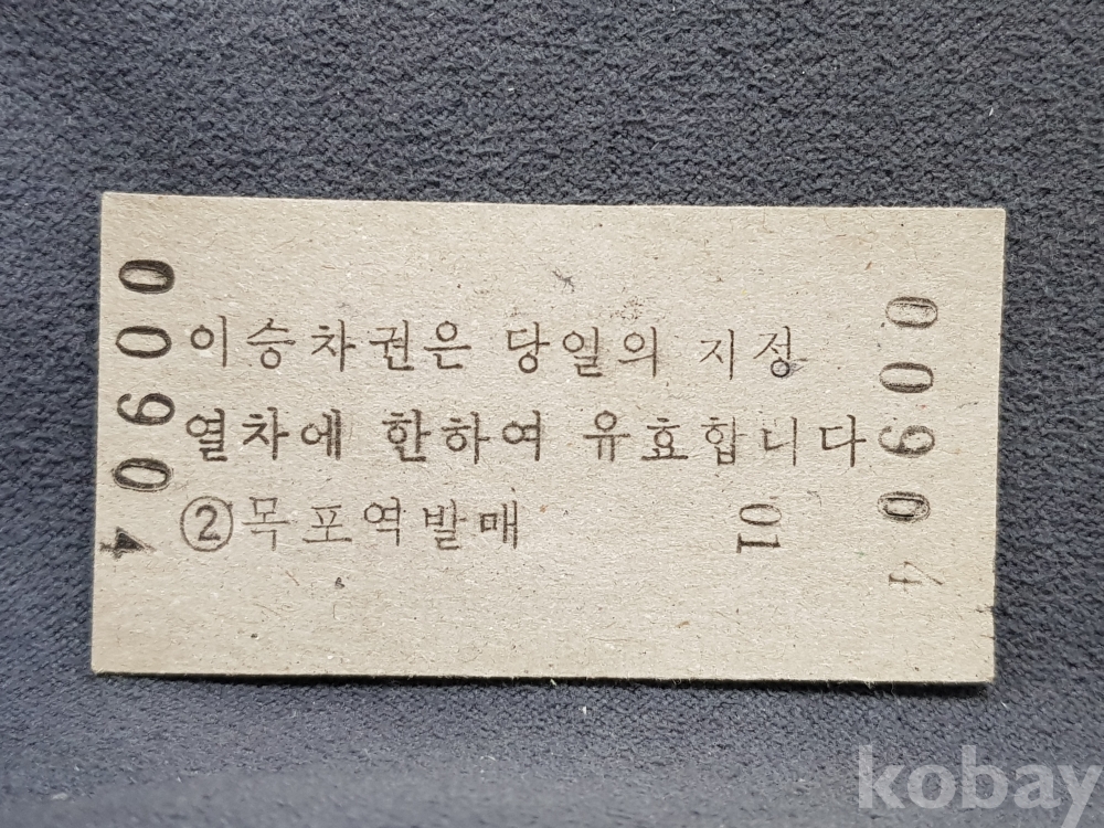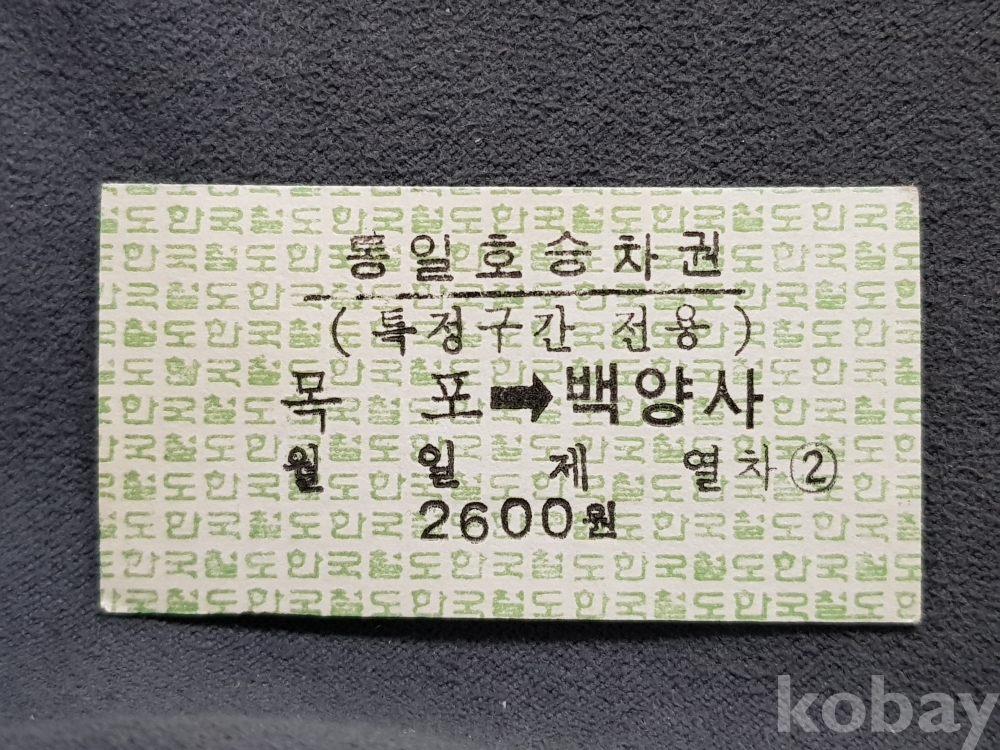 - 미사용 통일호 승차권(특정구간전용) " 목포 ▶ 백양사 " 2600원