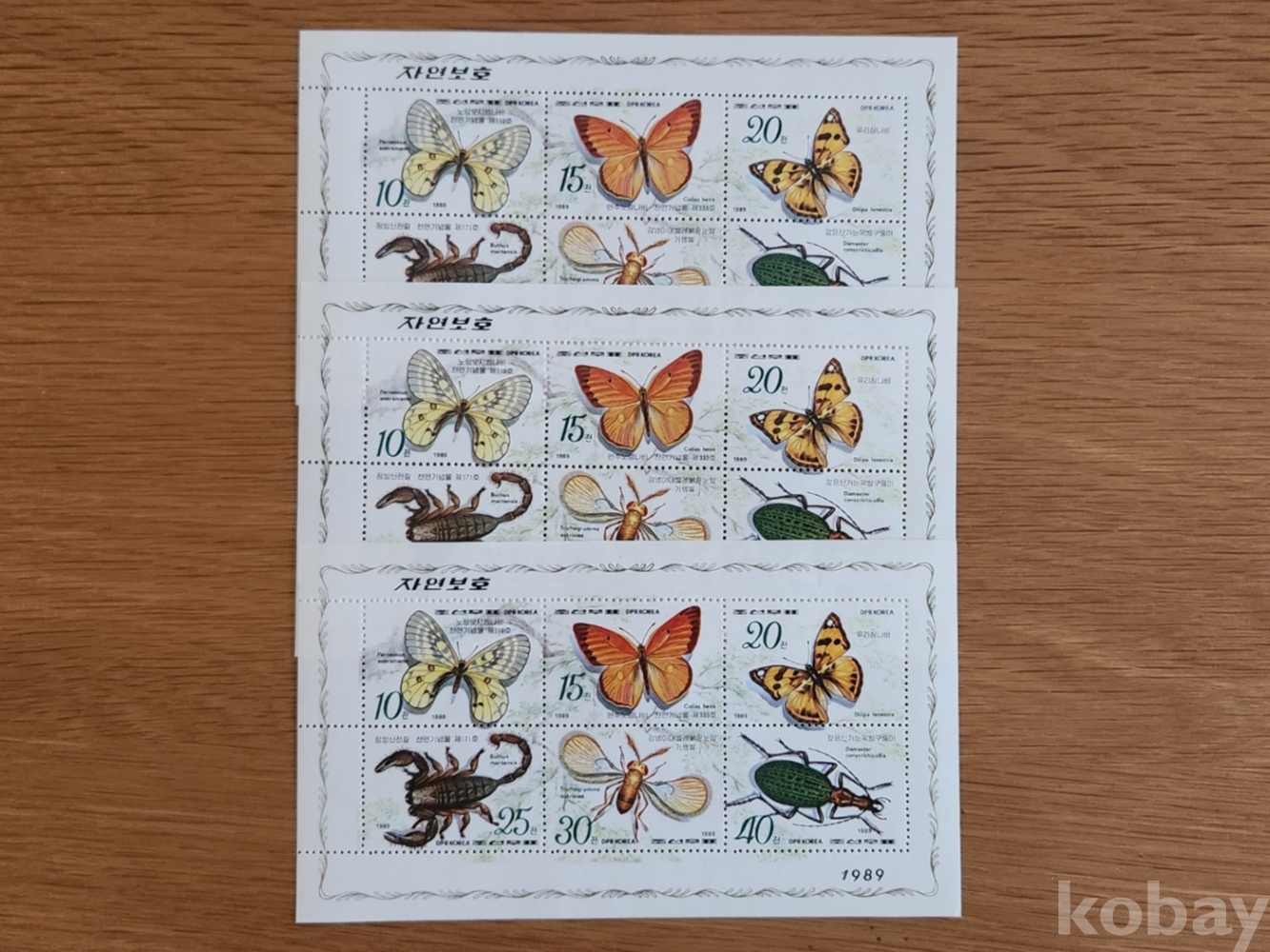 89년 윗동네 시트3매/나비/미사용