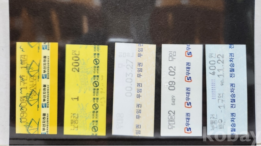 -기차, 지하철, 버스표등 다양합니다.