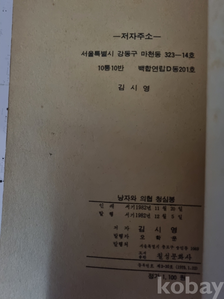 낭자와 의협 청심봉 김시영 칠성문화사 1982