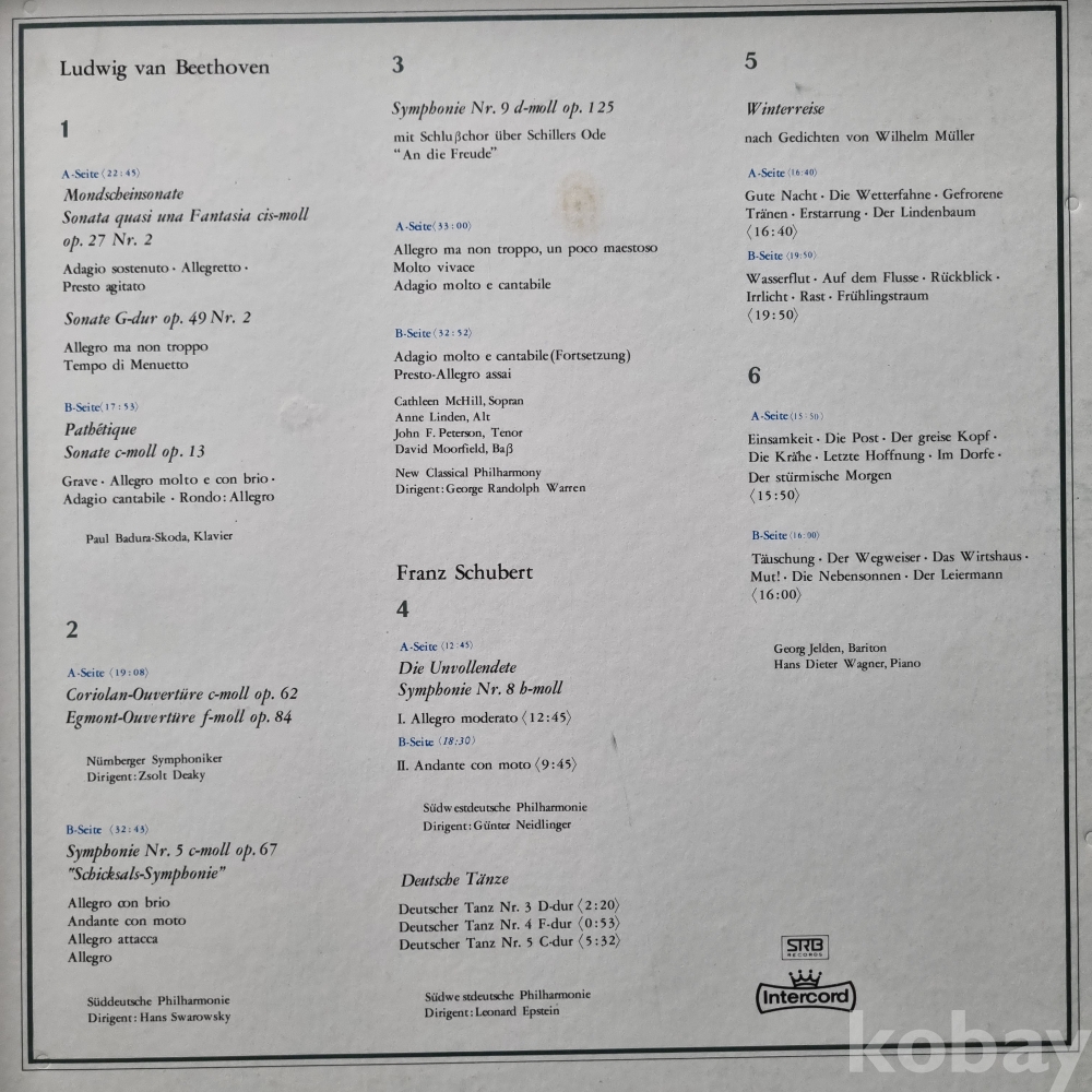 클래식 마스터 BEETHOVEN/SCHUBERT 6LP Intercord 서라벌 박스반