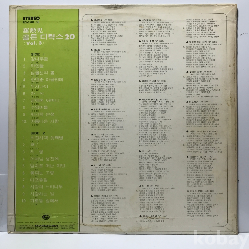 EX : 재생에 영향 없는 가벼운 기스 존재 발매정보 알수없음 가사지여부