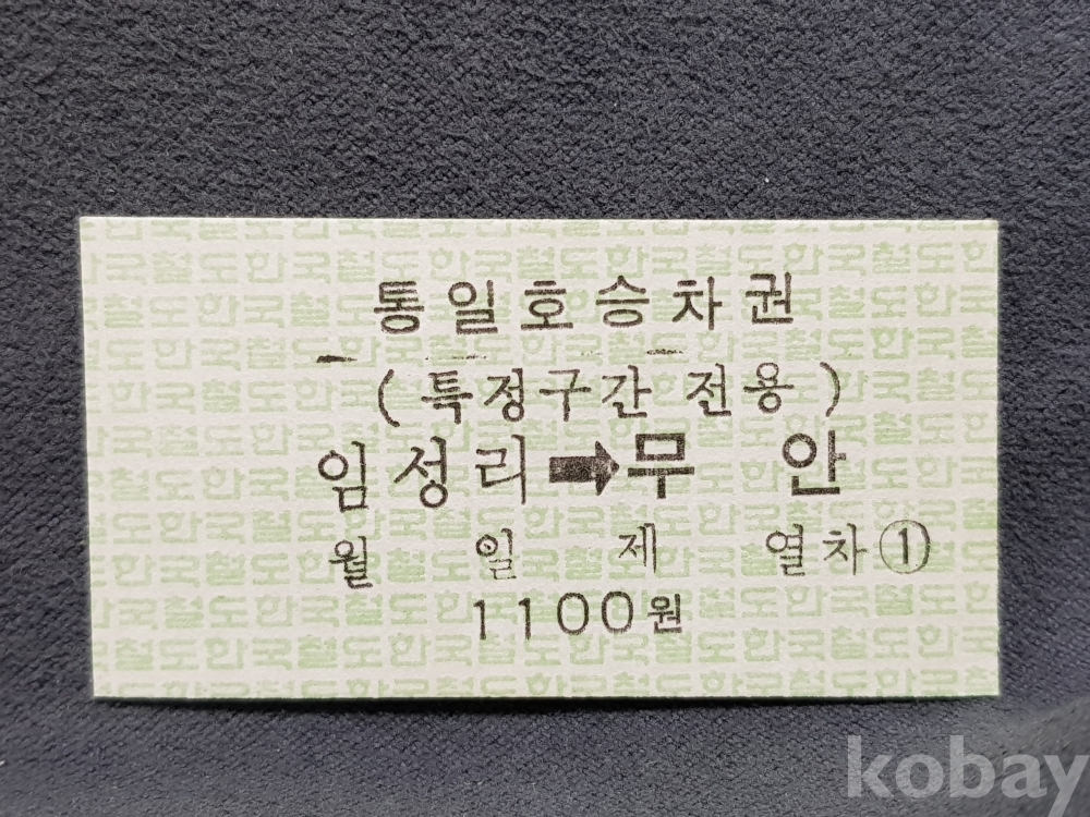- 미사용 통일호 승차권(특정구간전용) " 임성리 ▶ 무안 " 1100원