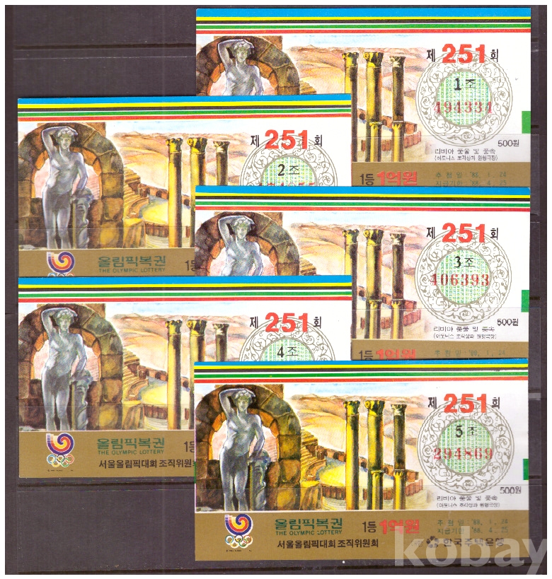 (서울올림픽) 1988 서울올림픽복권 제251회 1,2,3,4,5조 리비아 풍물 및 풍속(아도니스 조각상과 원형극장)