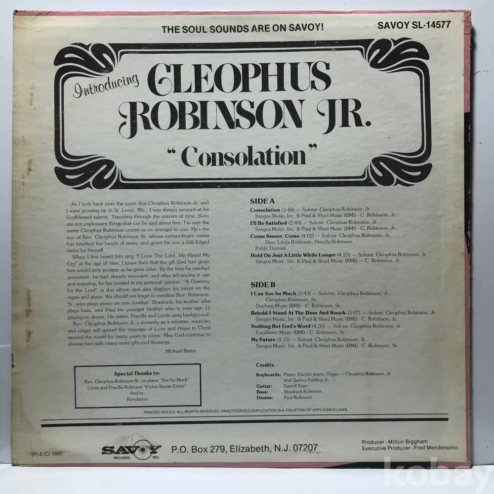 LP 21,950-168 Cleophus Robinson Jr. - Consolation ` 80 수입 자켓 EX 알판 EX
