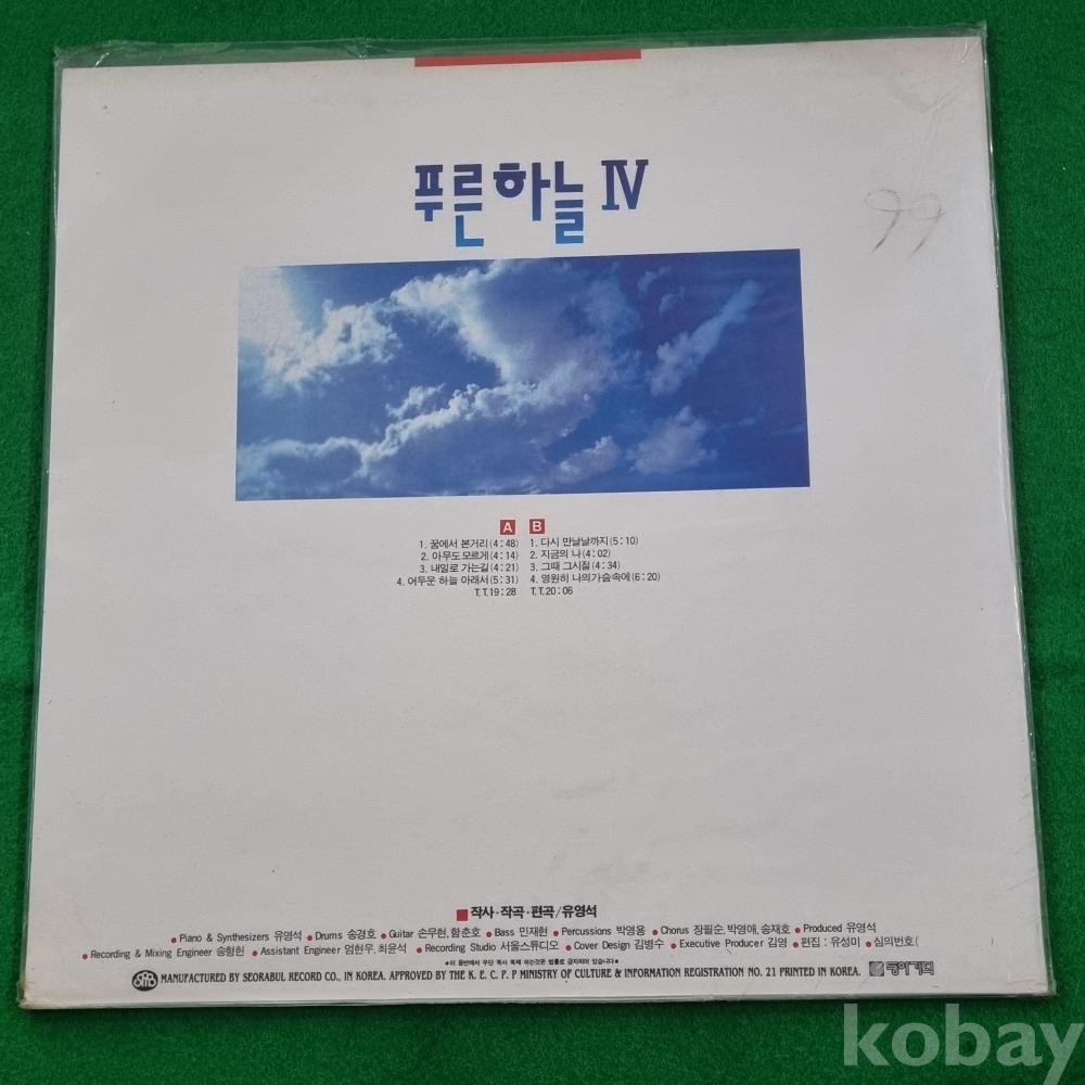 (LP판)미개봉)푸른하늘 4집(꿈에서 본 거리/어두운 하늘 아래서).