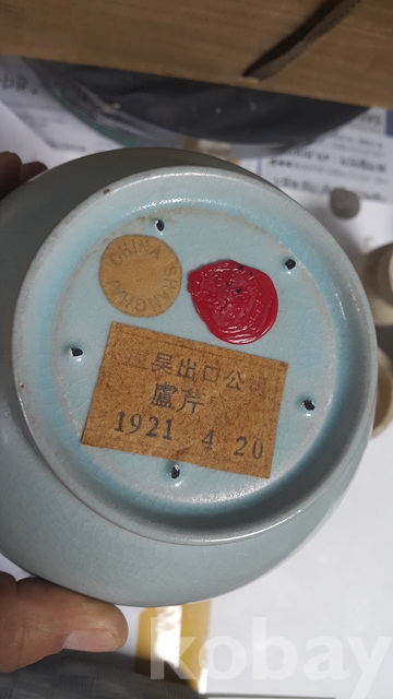 c-227.고급 오동박스에담긴오래된 목이긴 중국5대도자기 글자문 송 여요주병