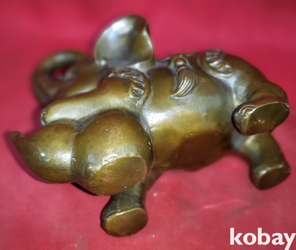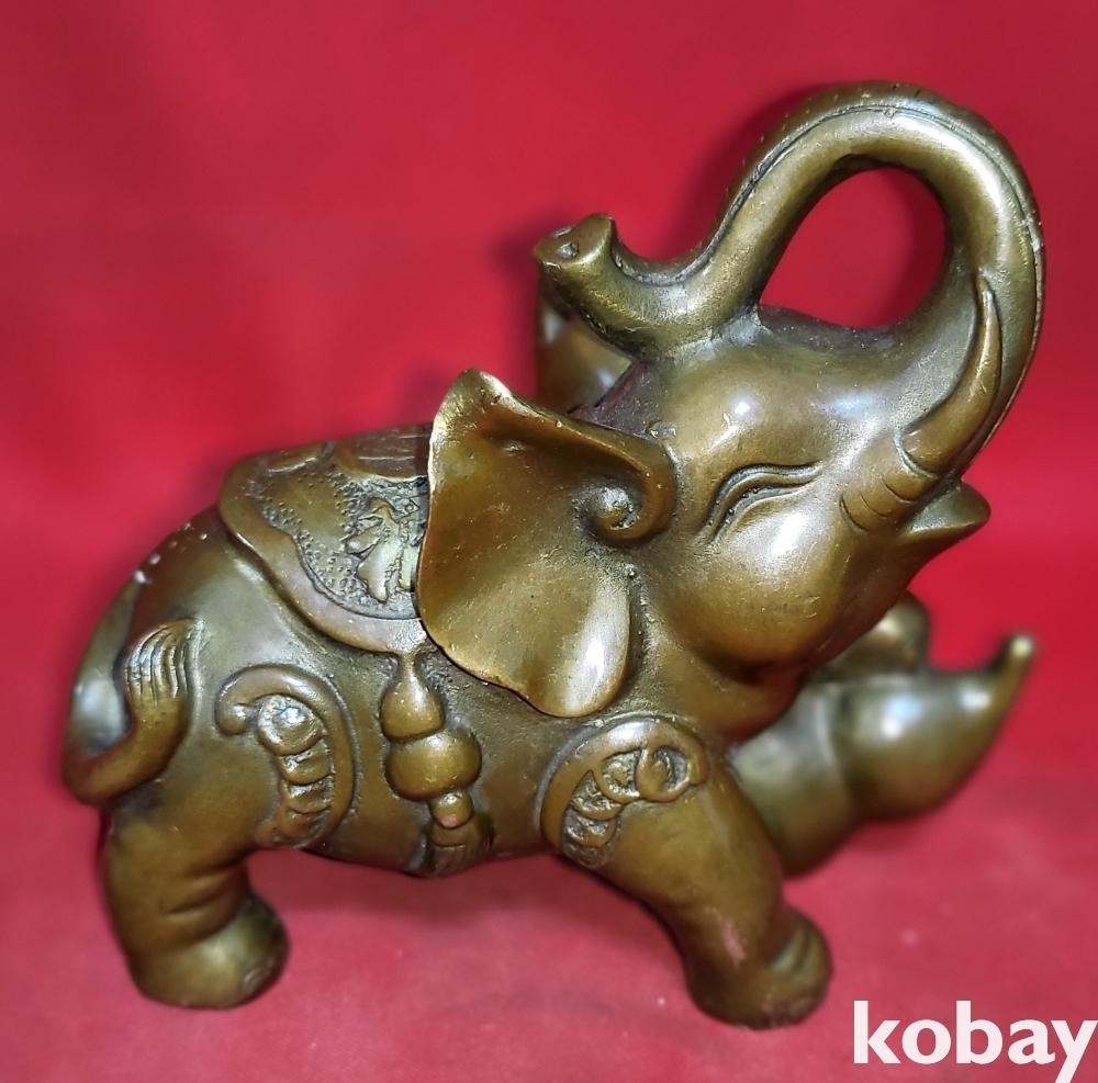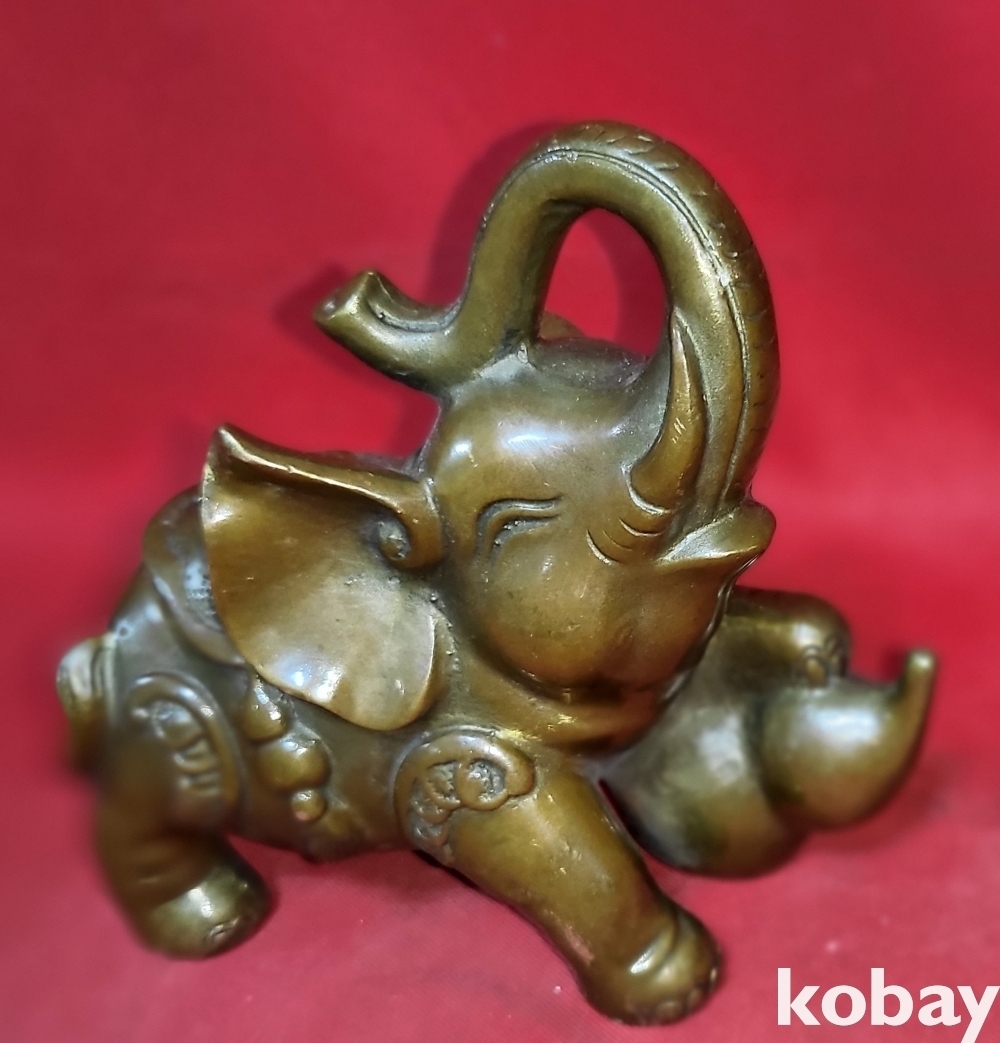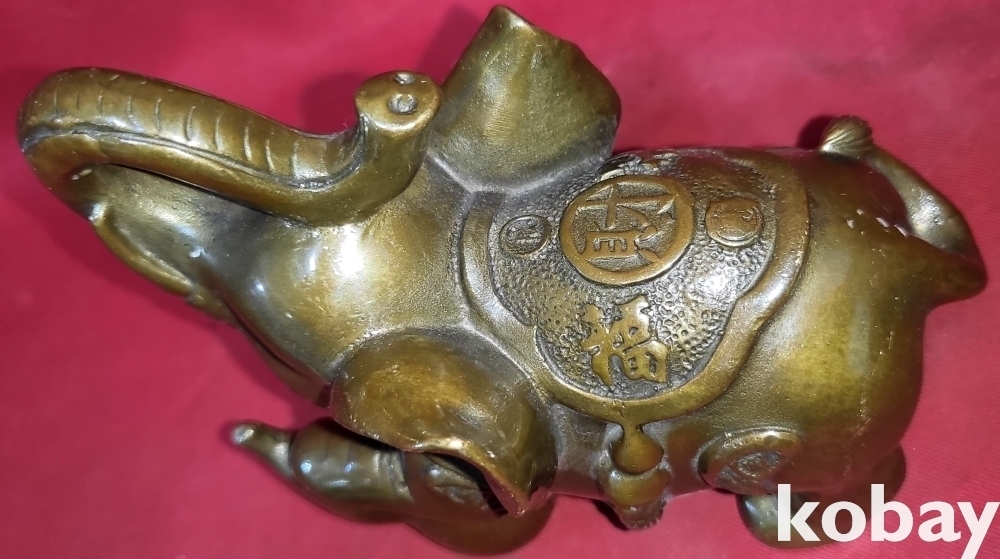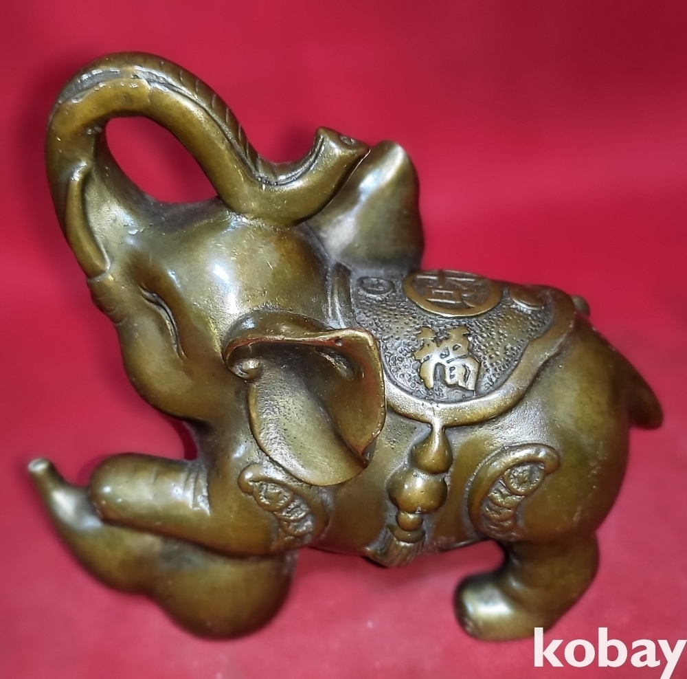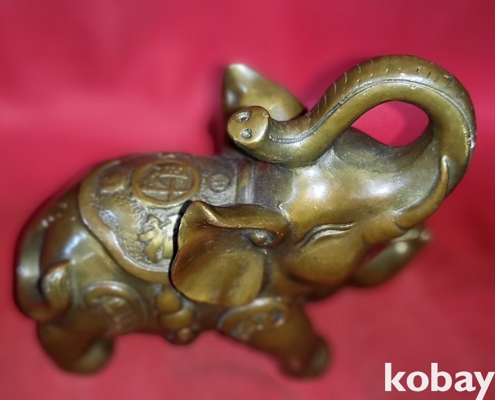 청동으로 만든 코끼리 문양 조각품입니다,