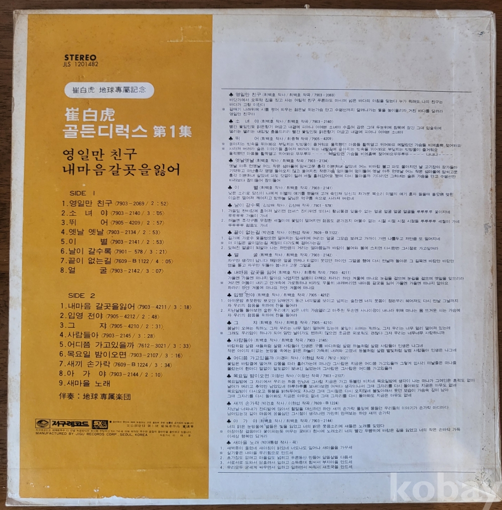 LP((☆10회 미만청음 ☆))((☆☆최백호 글든디럭스 앨범☆☆))