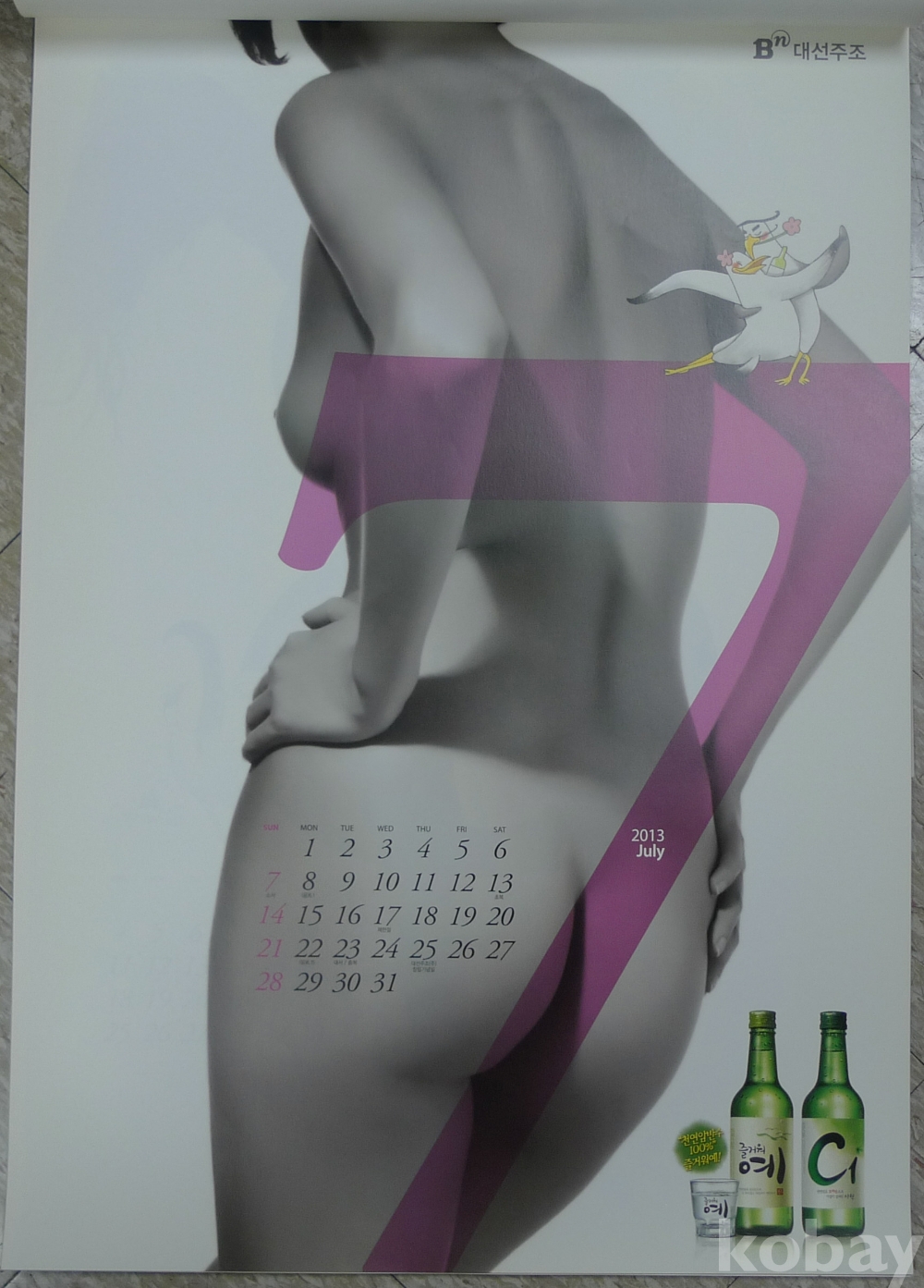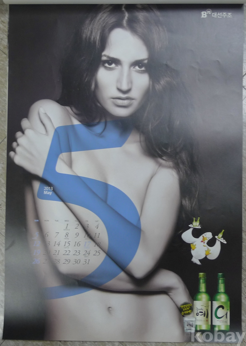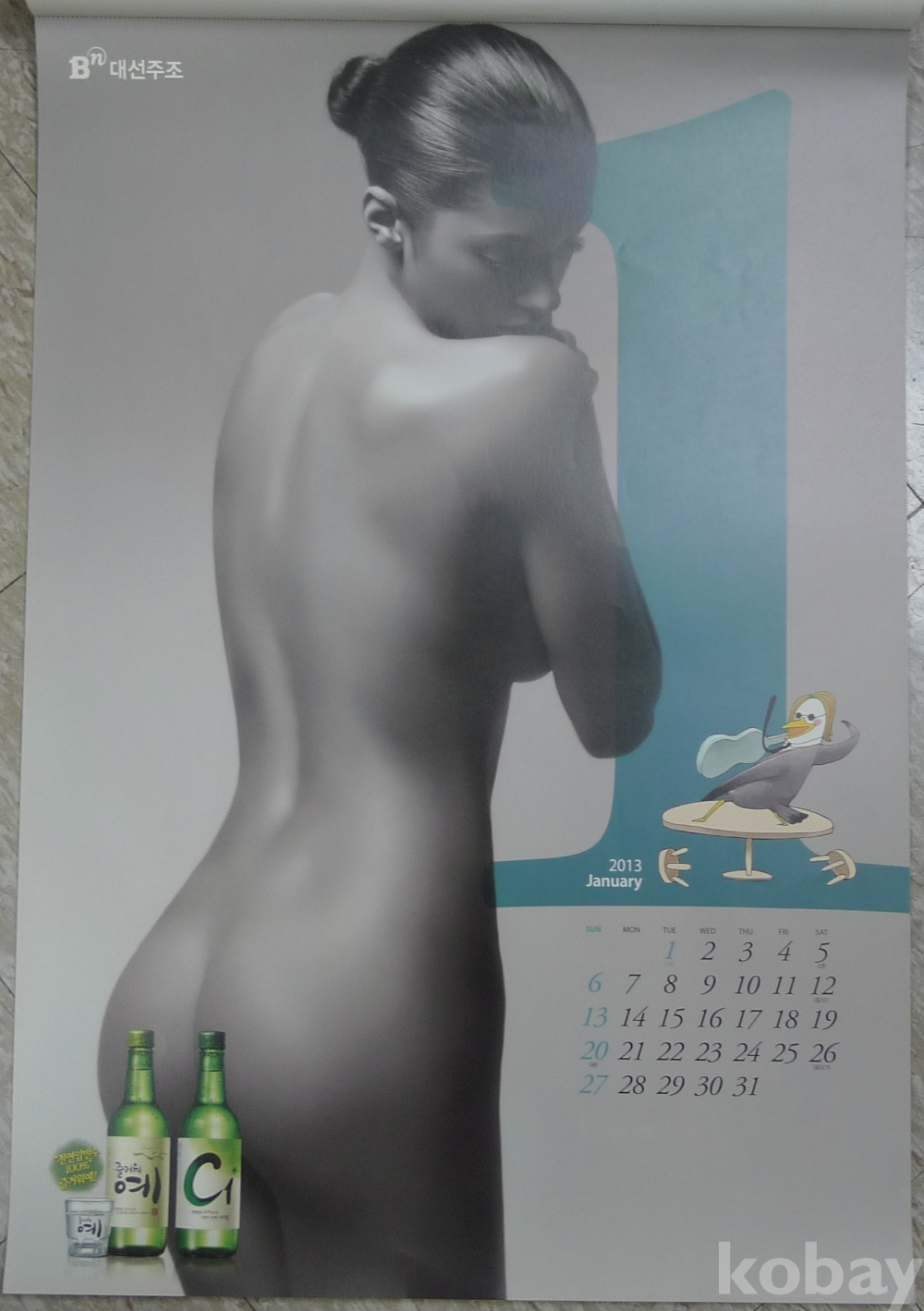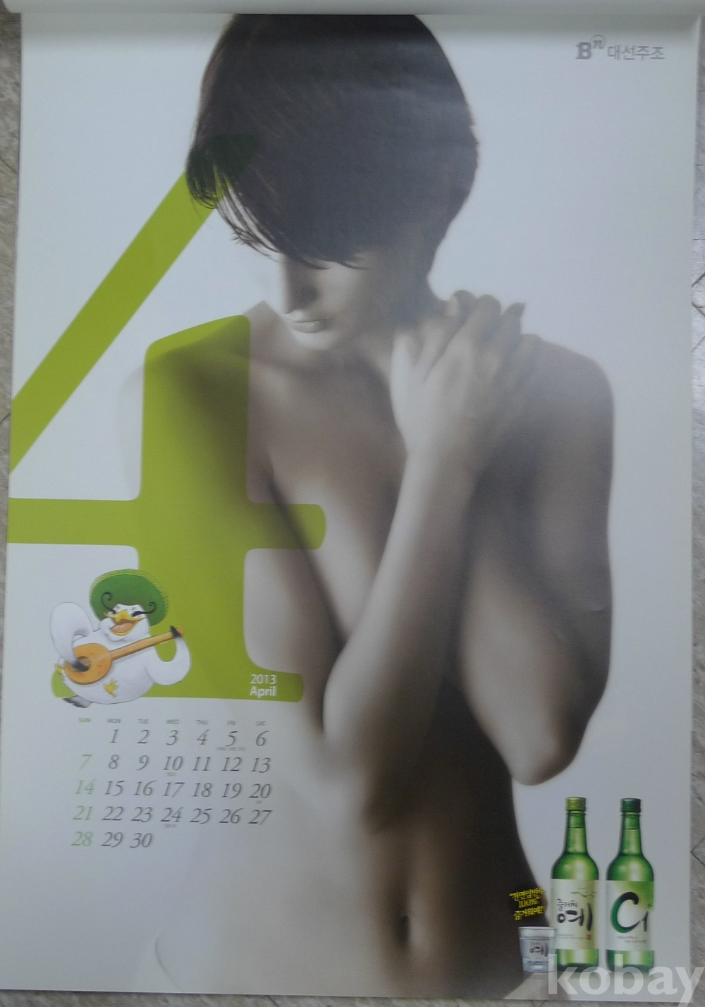 2013년 외국인 여성 누드 모델 대선주조 즐거워 예 소주 광고 벽걸이 달력