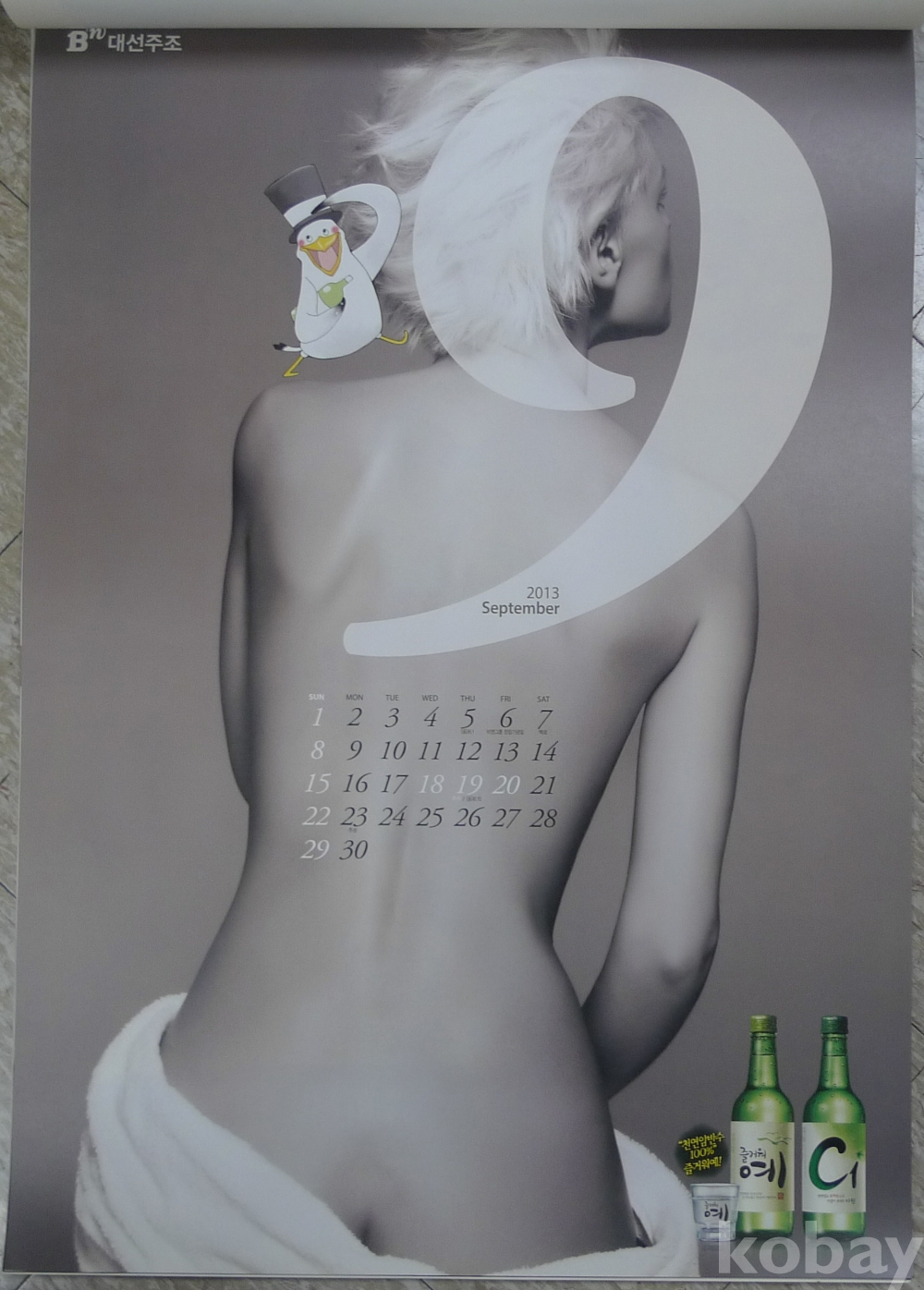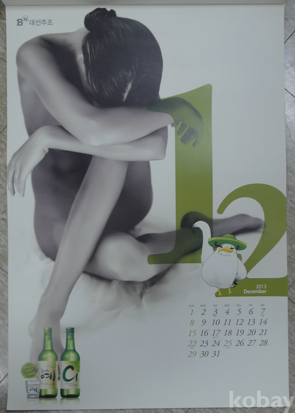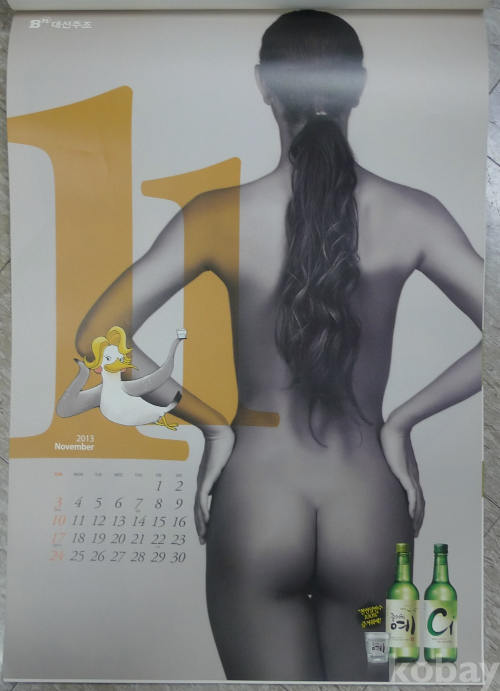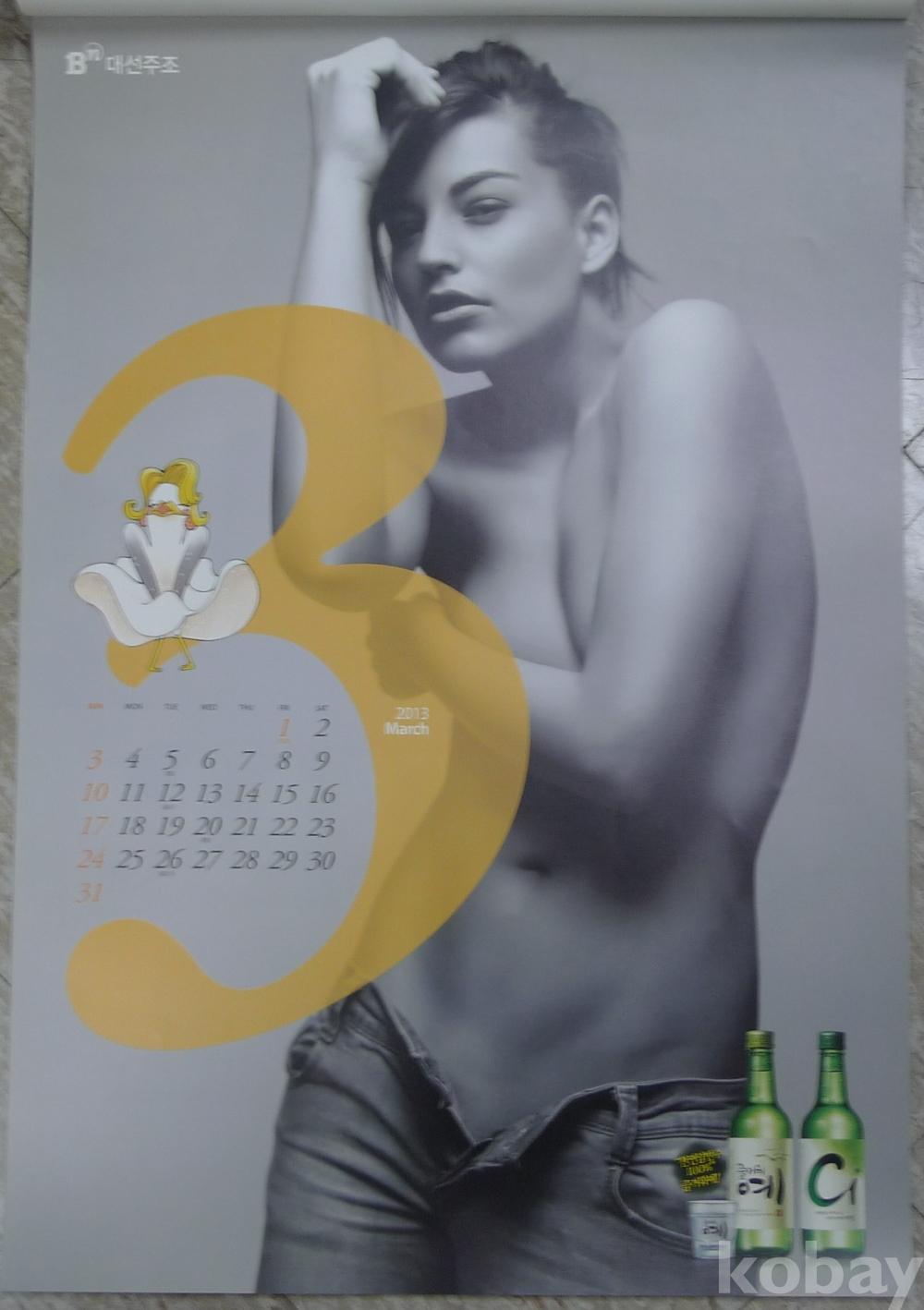 2013년 외국인 여성 누드 모델 대선주조 즐거워 예 소주 광고 벽걸이 달력