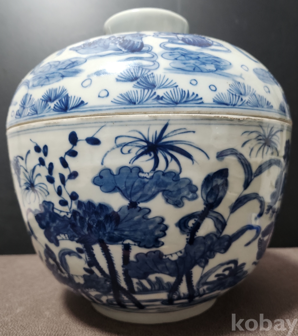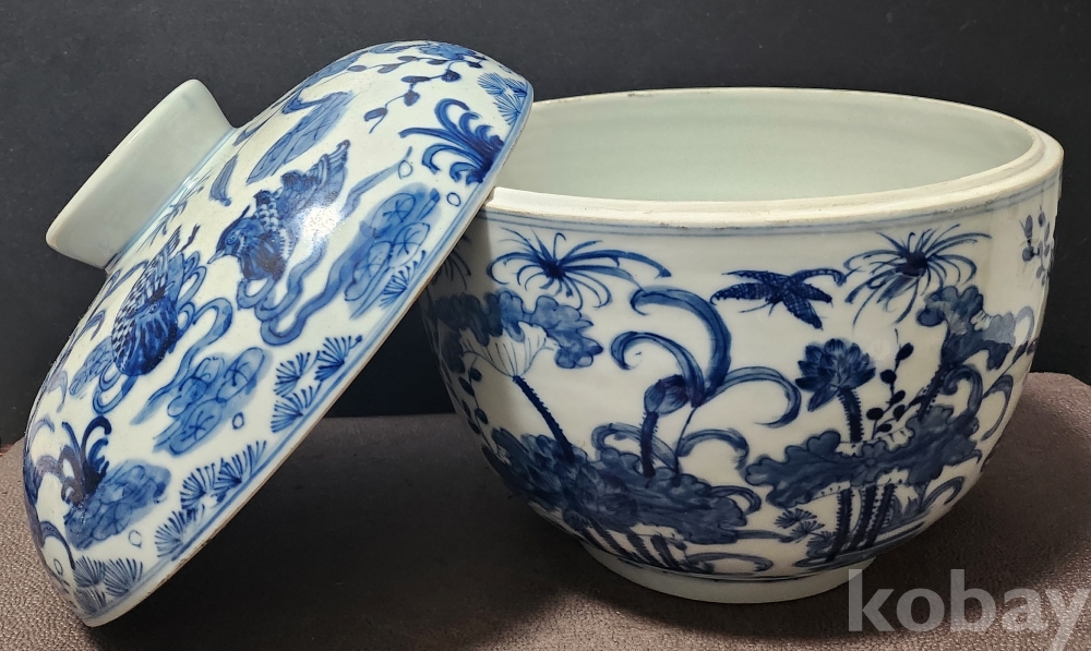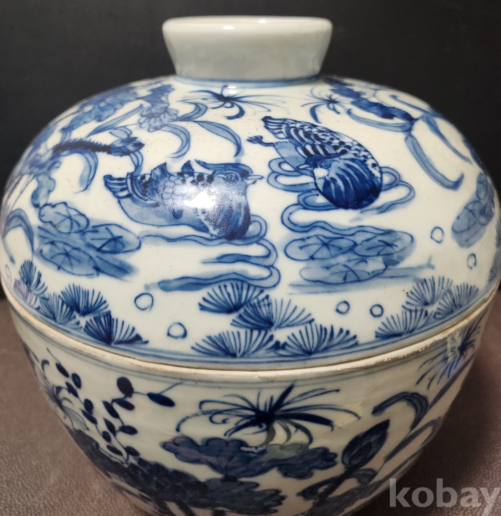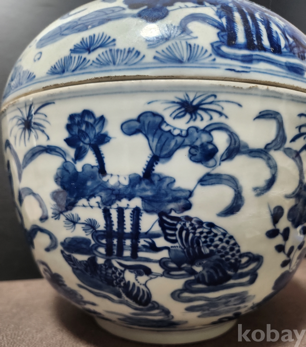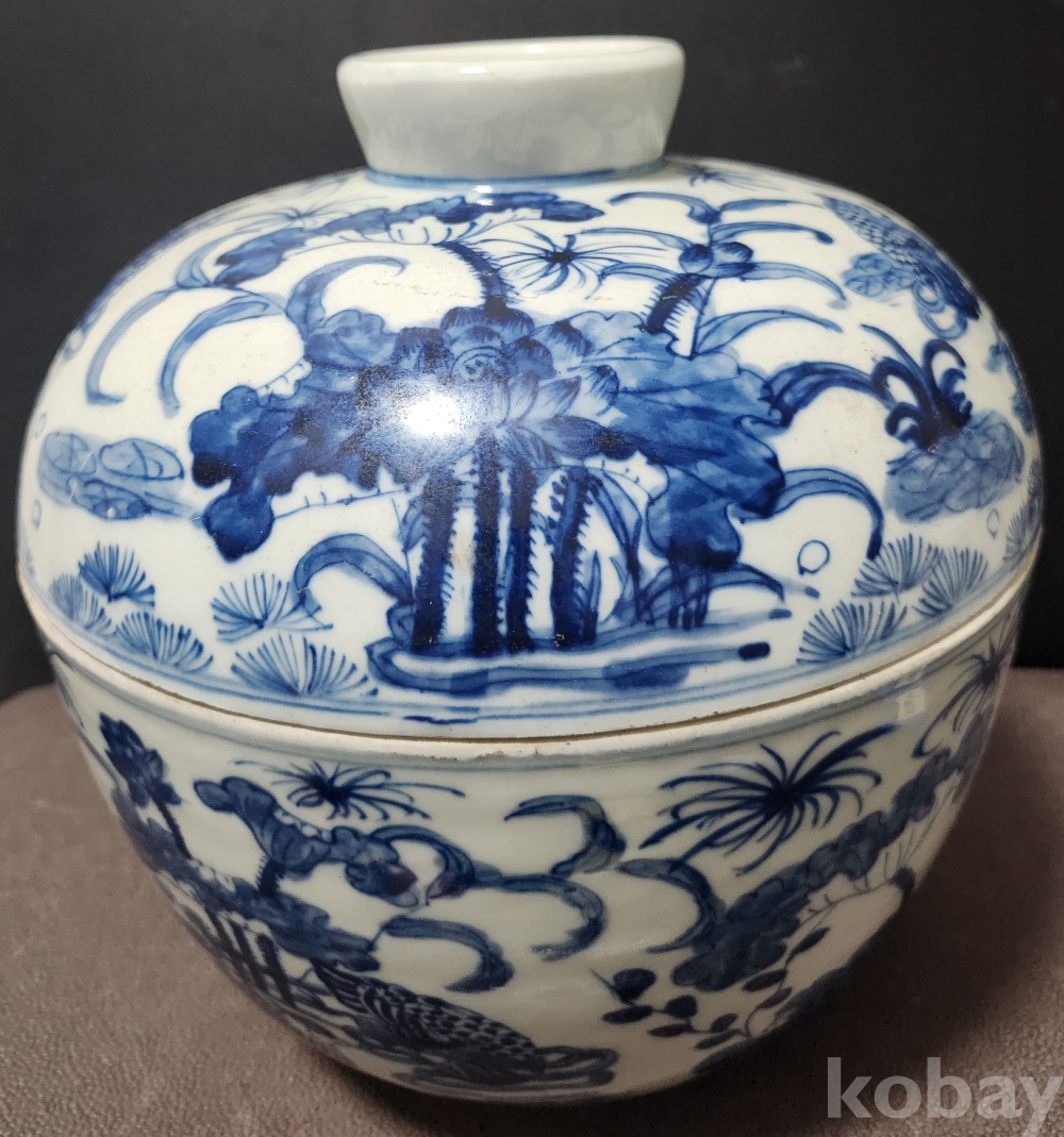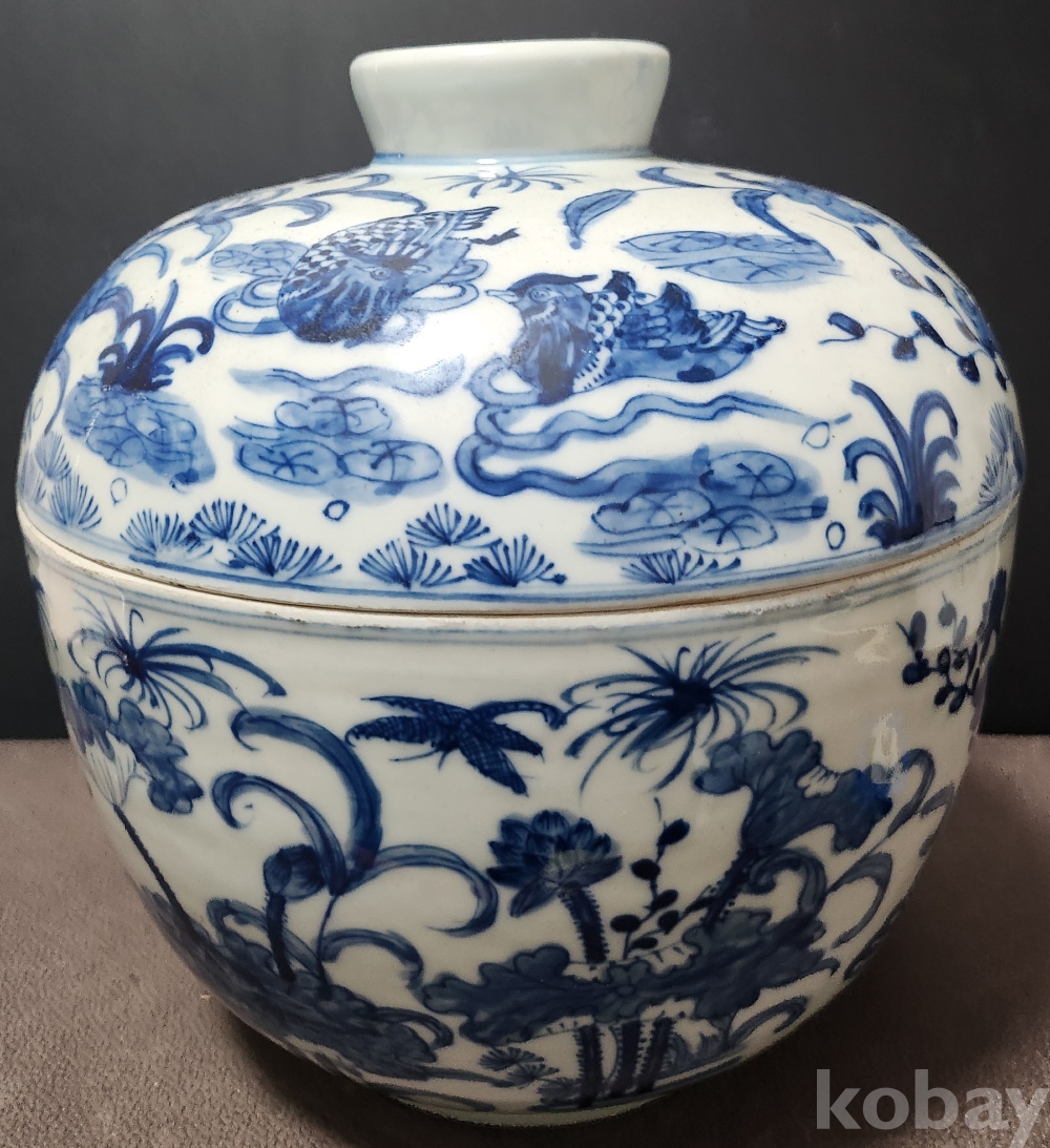 백자청화연홥도문대합 白磁靑華蓮鴨圖紋大盒 < 대형 사이즈 합 合 >