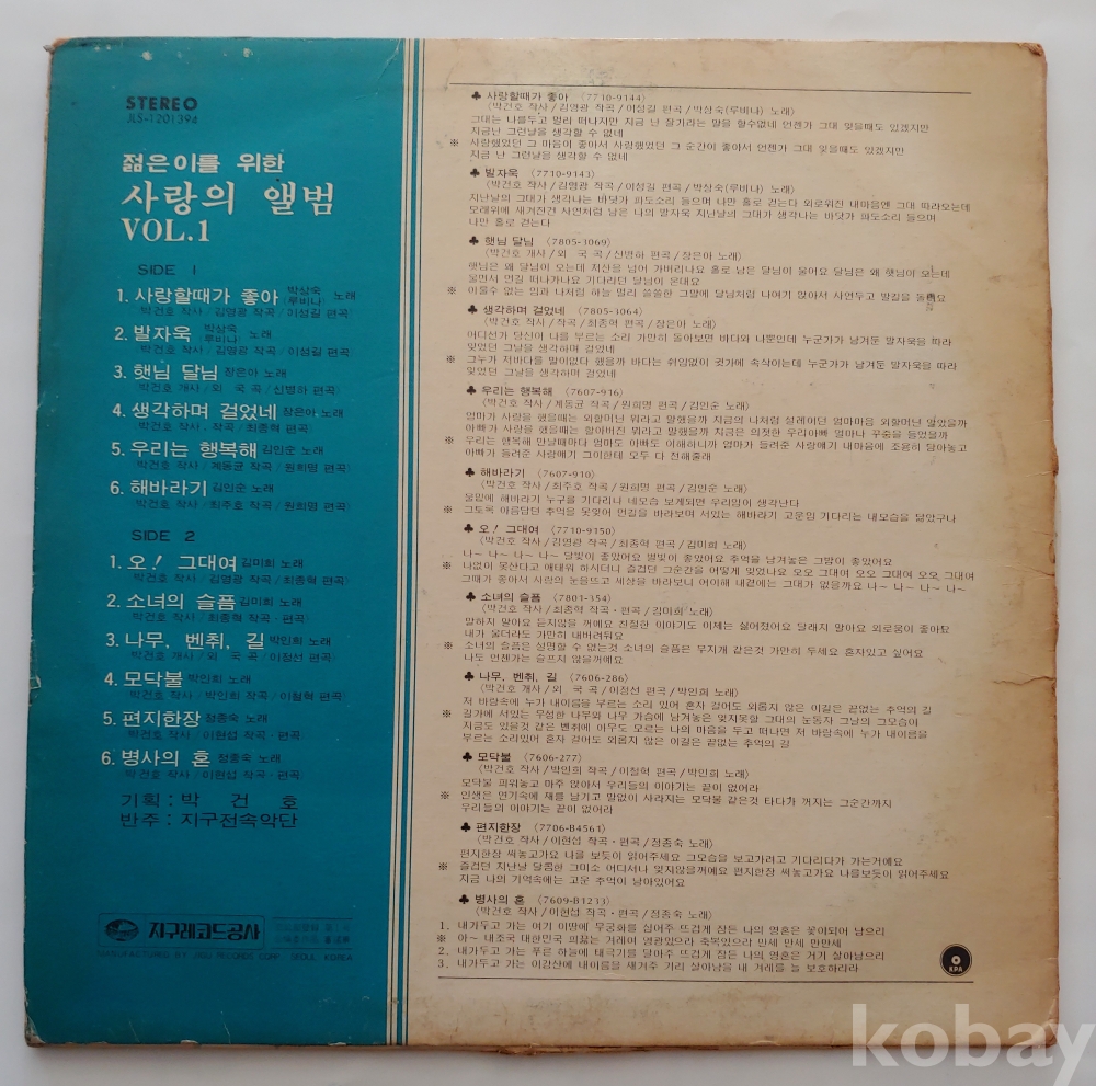 젊은이를 위한 사랑의앨범1집Lp/햇님 달님,우리는 행복해
