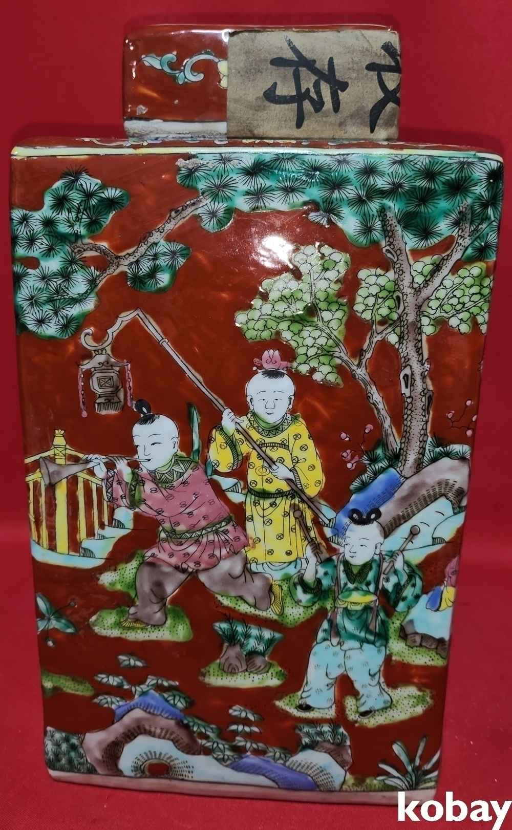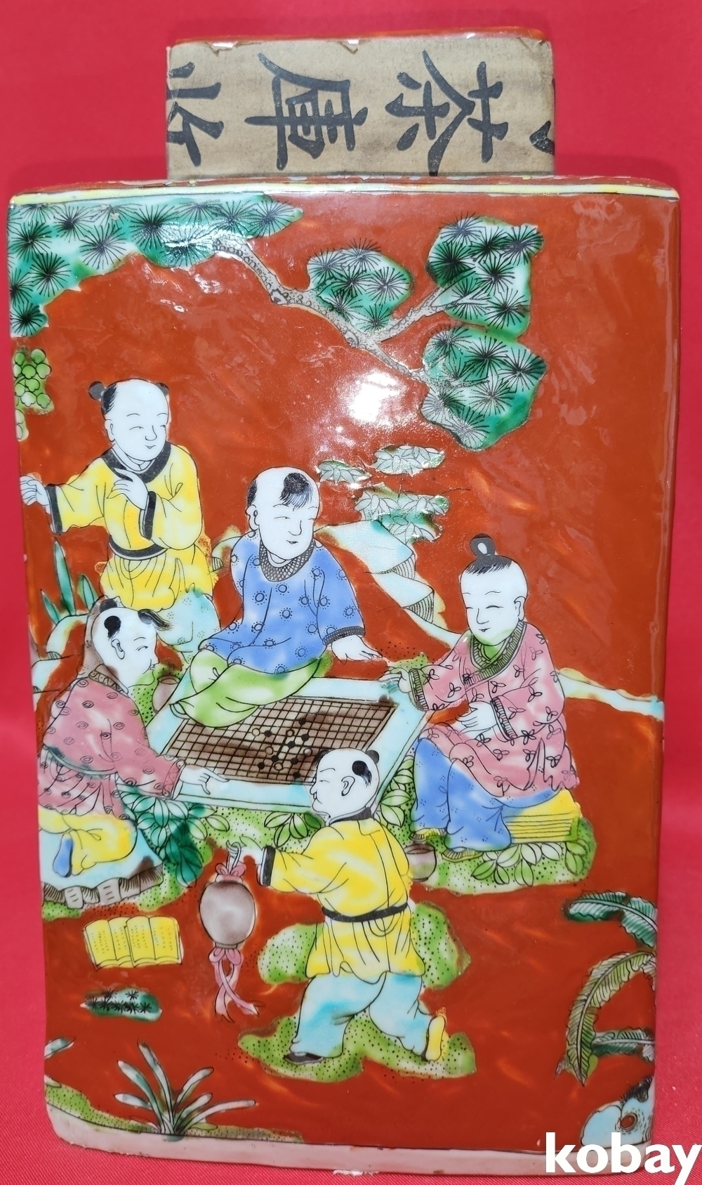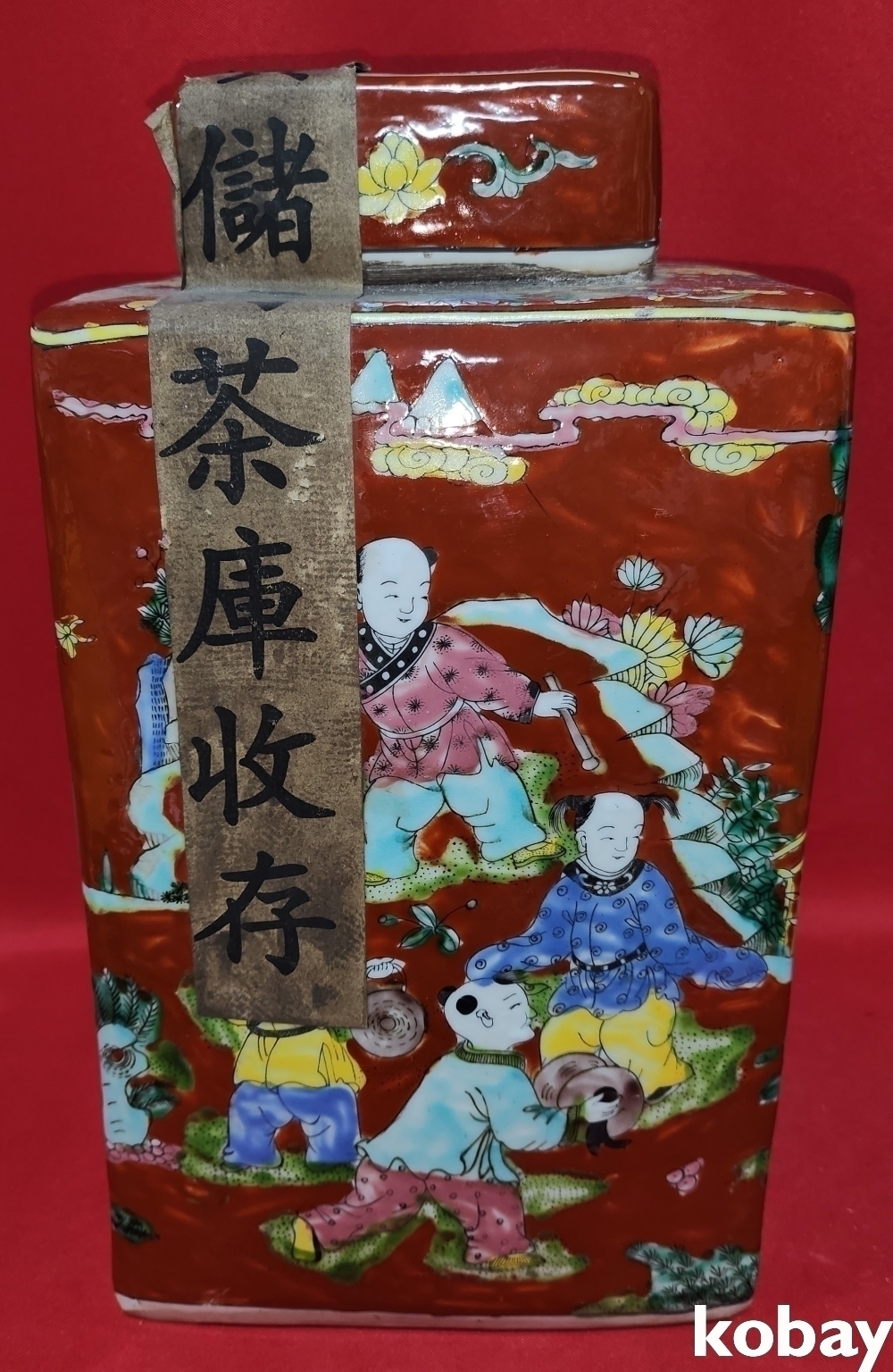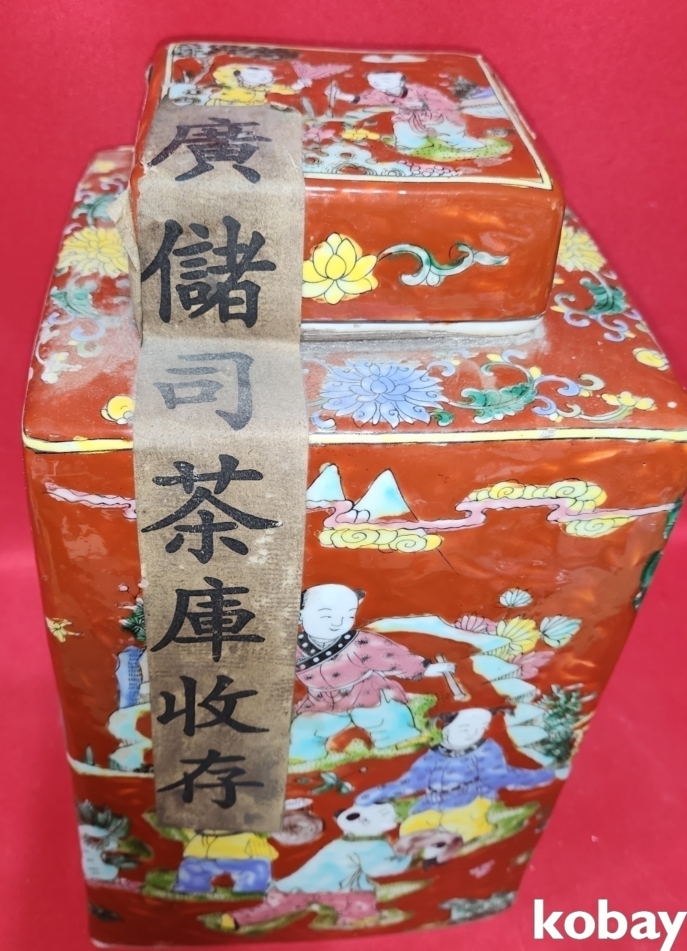 대청강희연제 홍지 분채 동자문 사각 미개봉 보이차가 들어있는 사각병입니다,