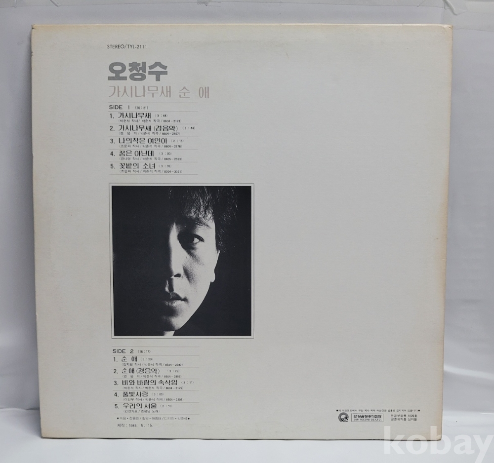 | 자켓상태 | EX : 약간의 마모, 모서리 찢김 존재 | 음반상태 | VG : 생활 기스 다수, 가벼운 노이즈 존재 | 발매정보 | 초반 | 가사지여부 | 유 |