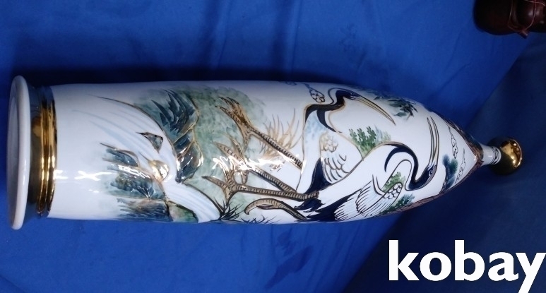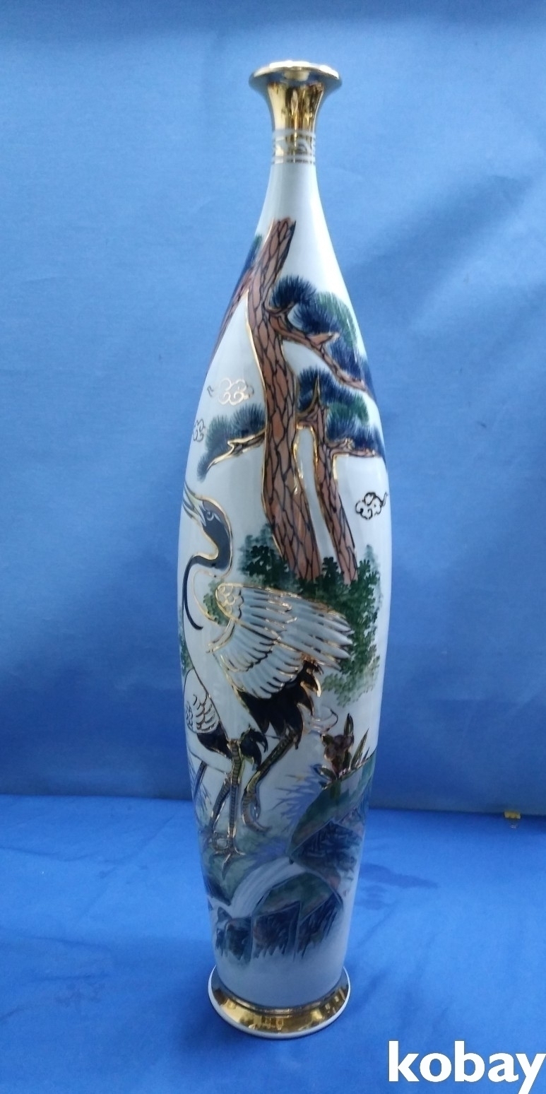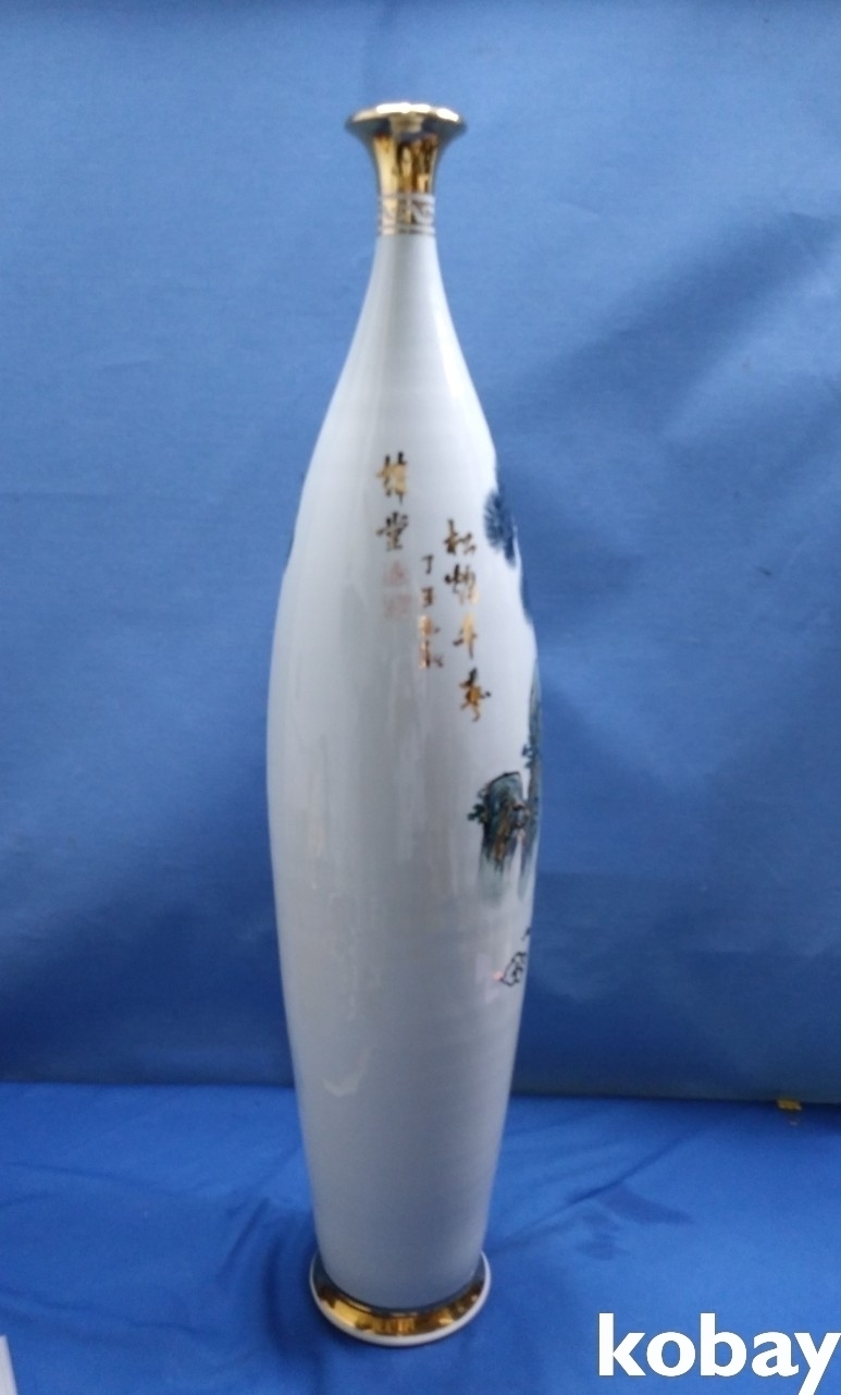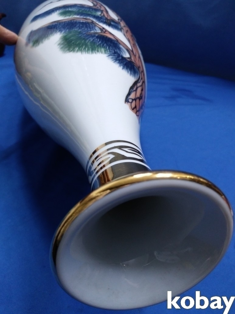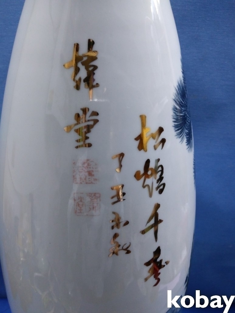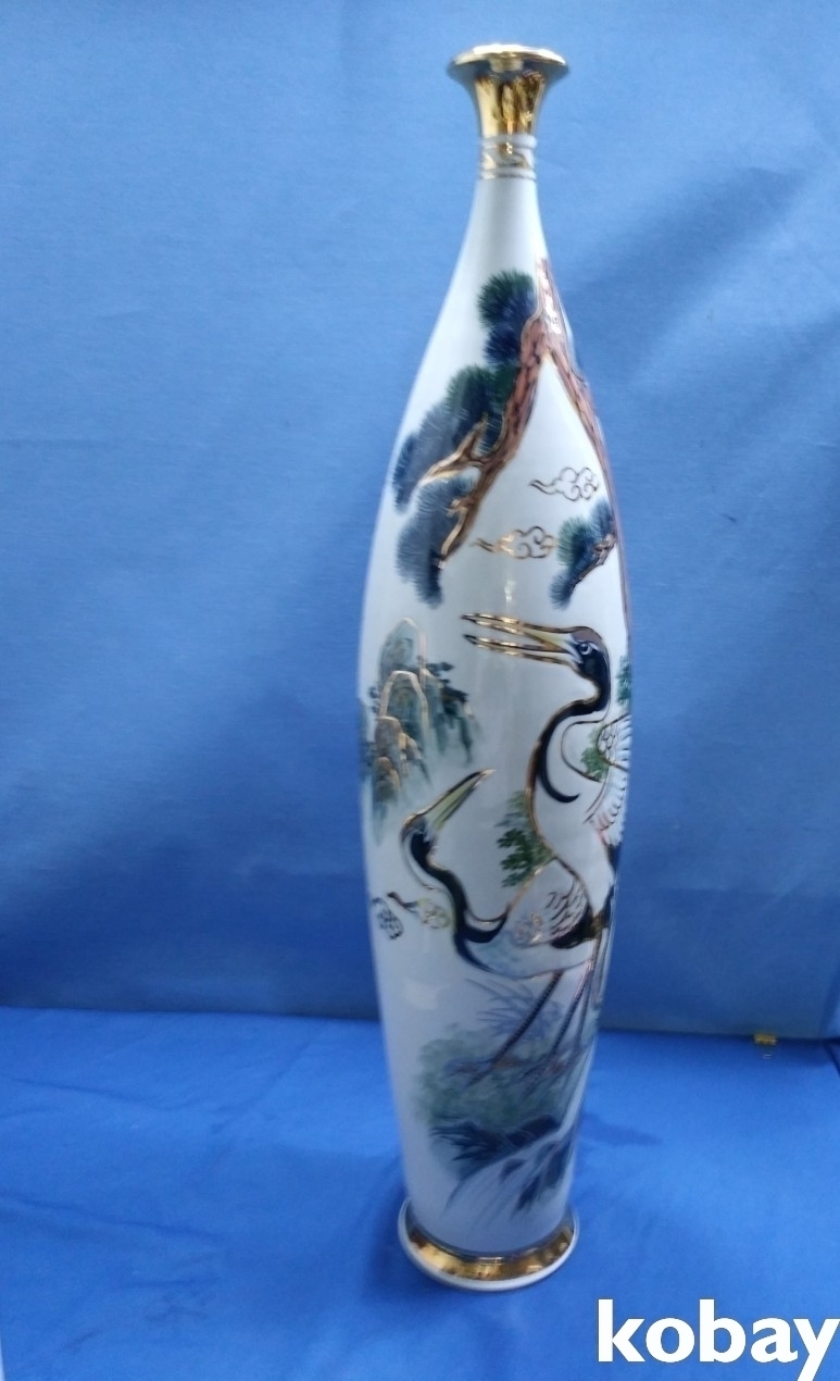 송학 문양이 양각으로 있는 입이 작은 대형 도자기 입니다.