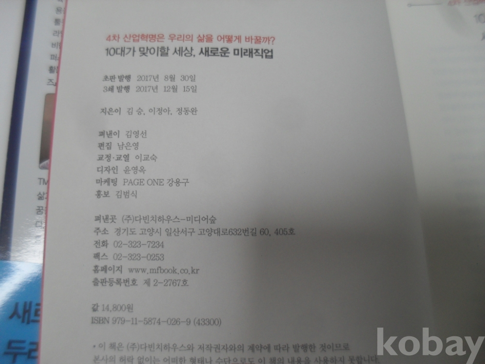 RE4) 17년 미디어숲 발행-김승 외[10대가 맞이할 세상,새로운 미래직업]