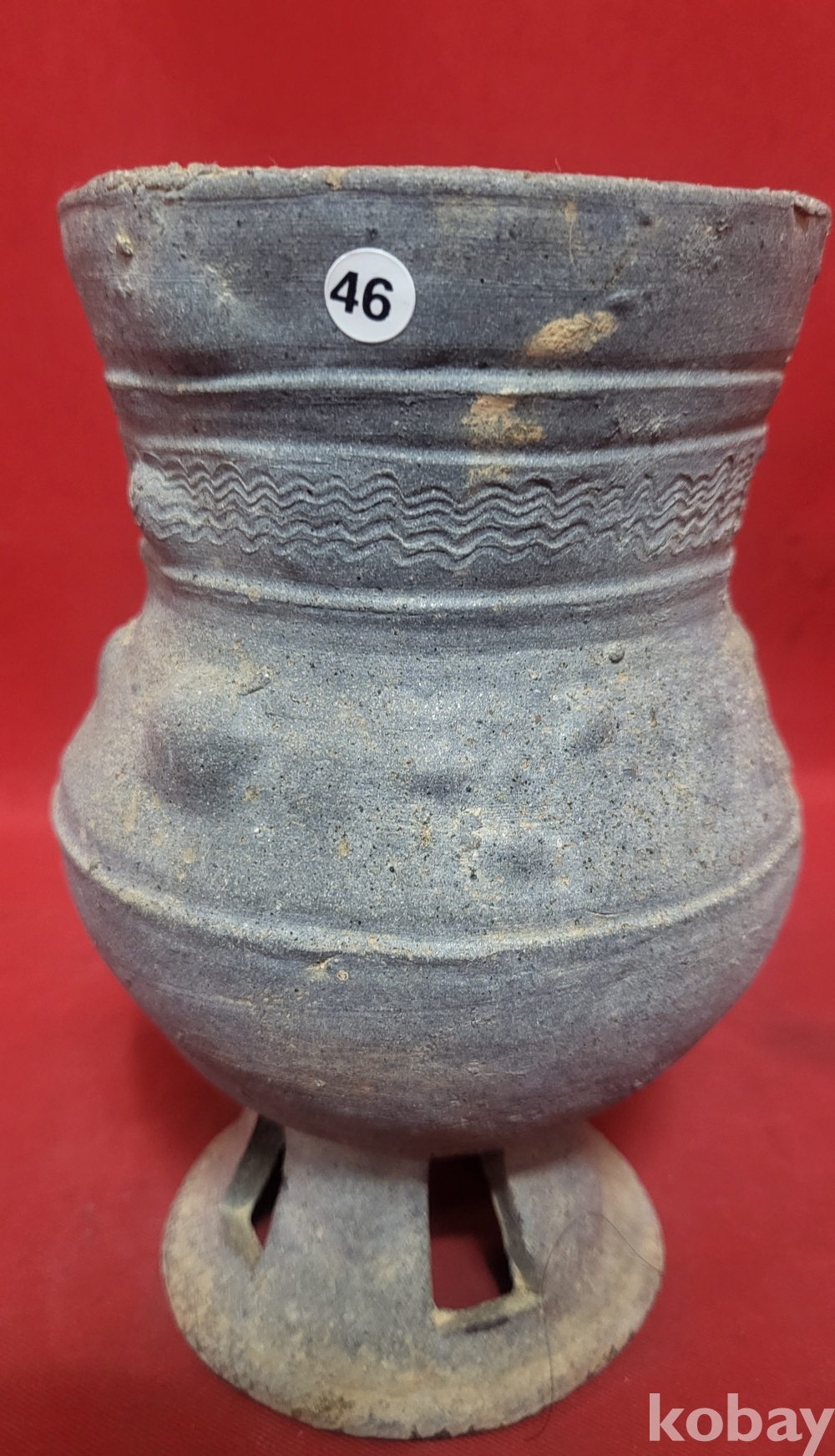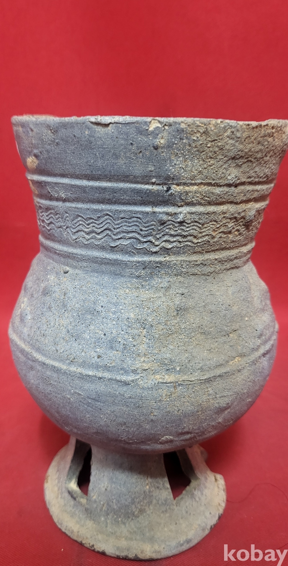 신라토기 굽다리 파도문양 문양 호(壷) 진품입니다,