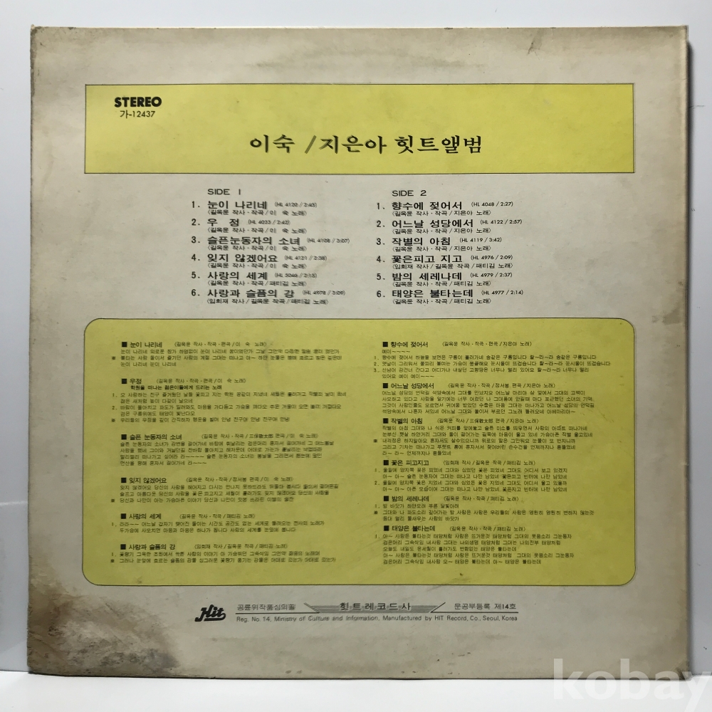 LP 1/ 17-4 이숙 - 눈이 나리네/ 지은아 - 향수에 젖어서 ` 80 현대 자켓 EX- 알판 EX+