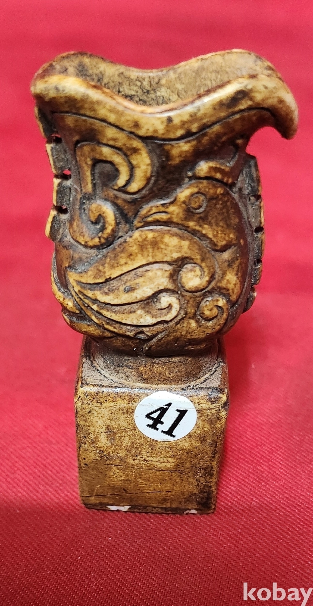 옥돌로 만든 오리 문양 도장입니다,