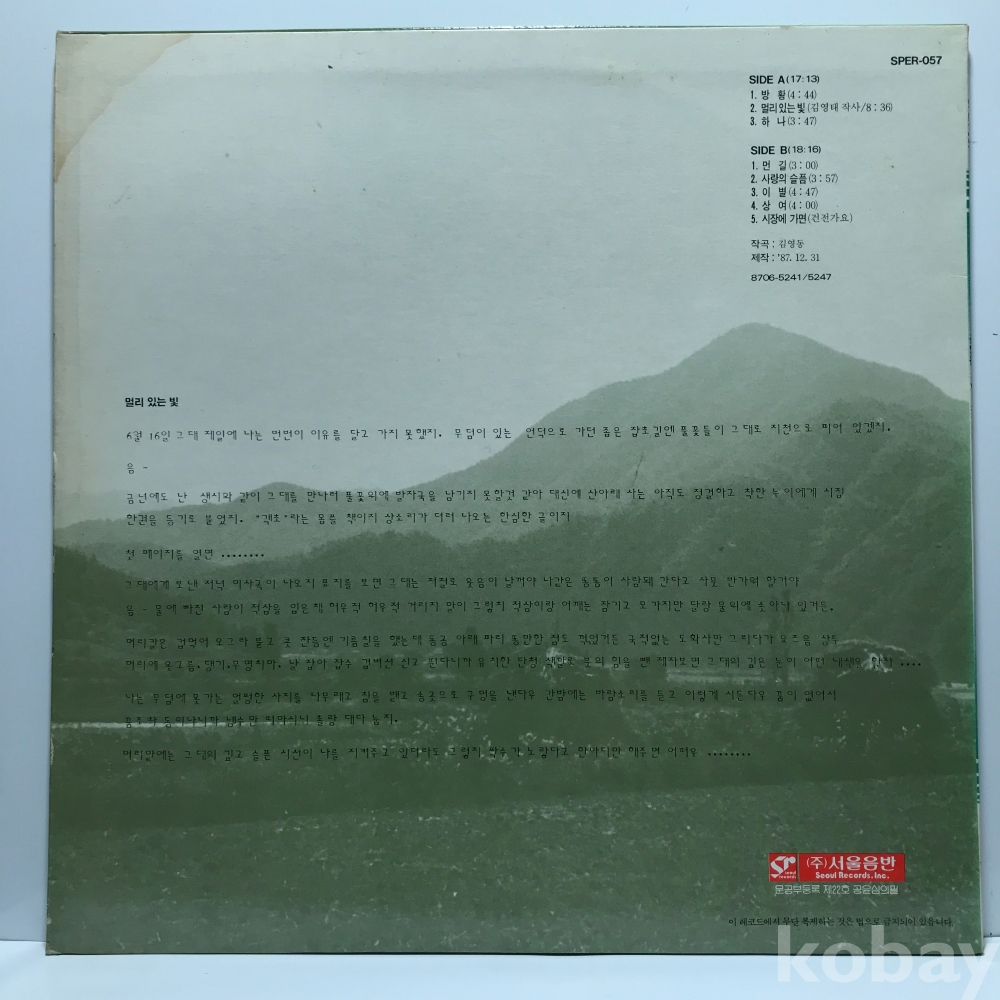 LP 83,740-1 김영동 - 먼길 . 자켓 EX 알판 EX 87 년 국내반