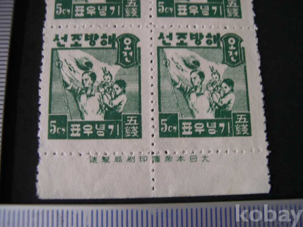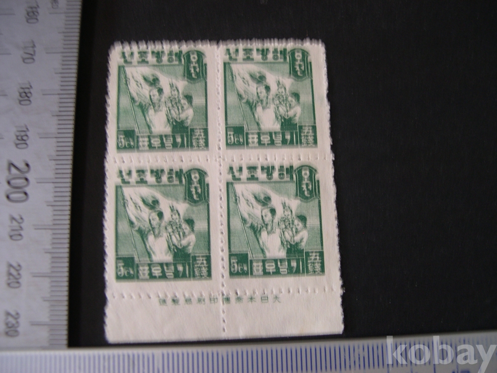 4매명판 #117 : 5젼 가족과 국기 - 해방 기념 (1946. 5. 1) 대일본제국인쇄국제조