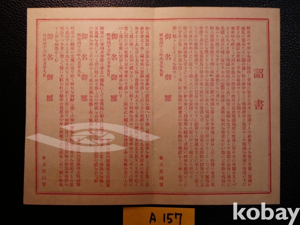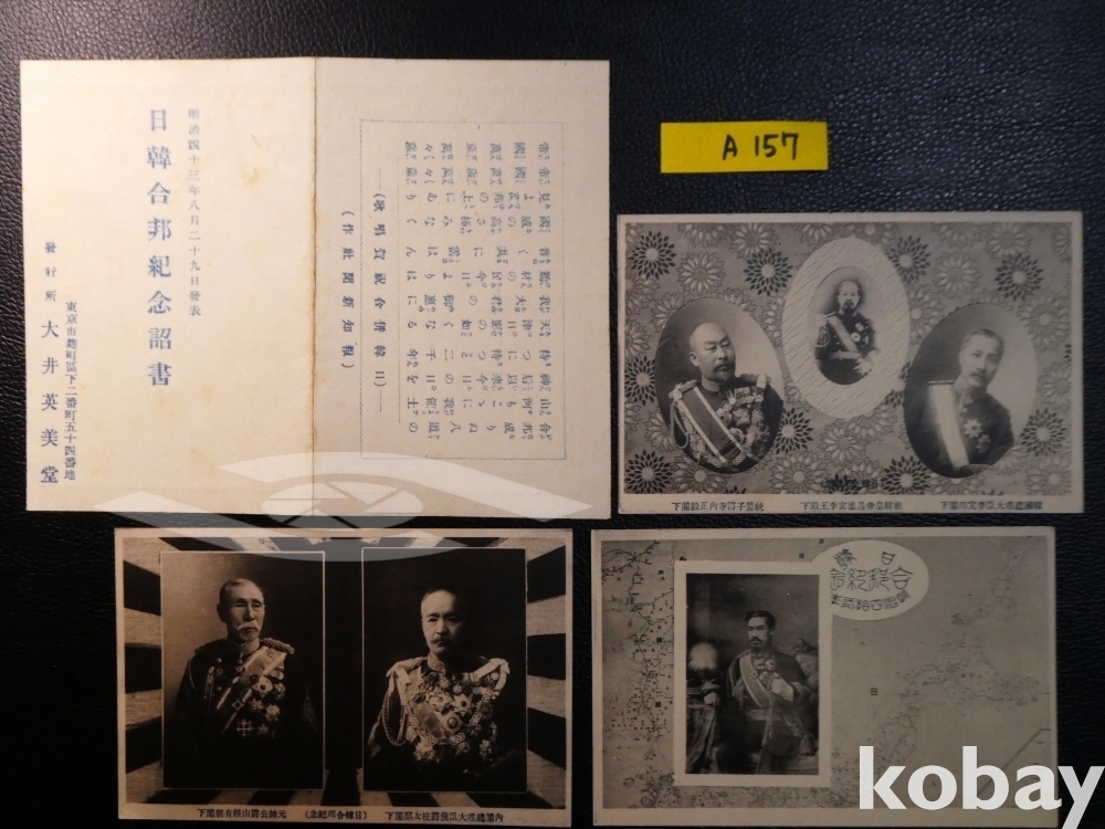▣순종황제,송병준(이완용으로 오기),테라우치/야마가타 아리토모,카쓰라/메이지천황과 병합된 한반도 지도,한일합방 기념표시.