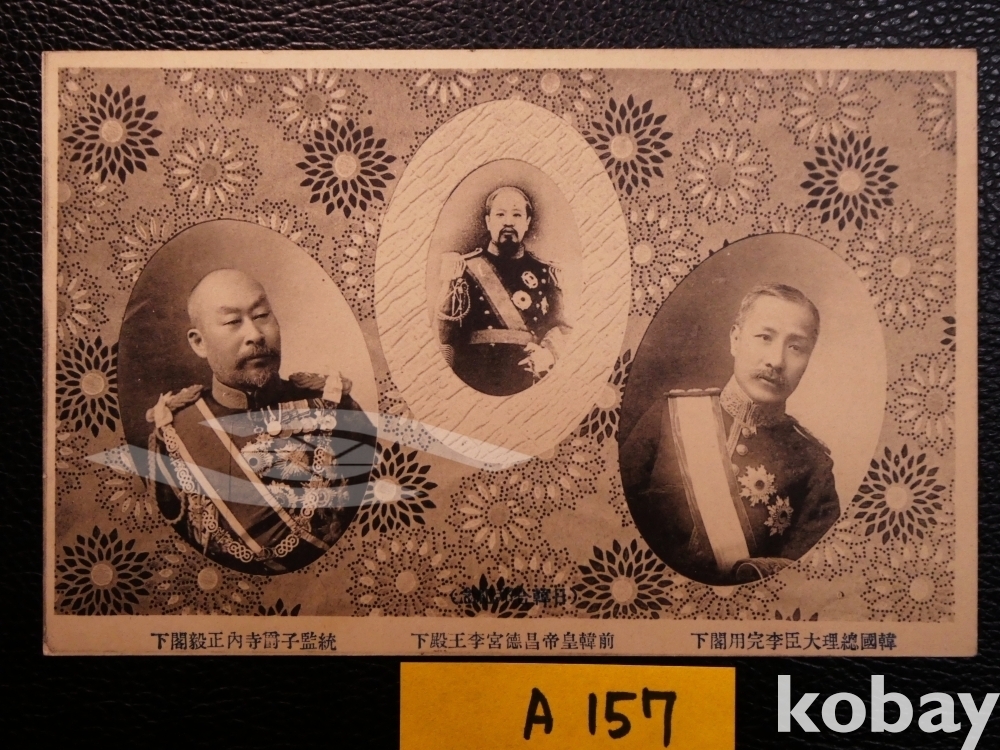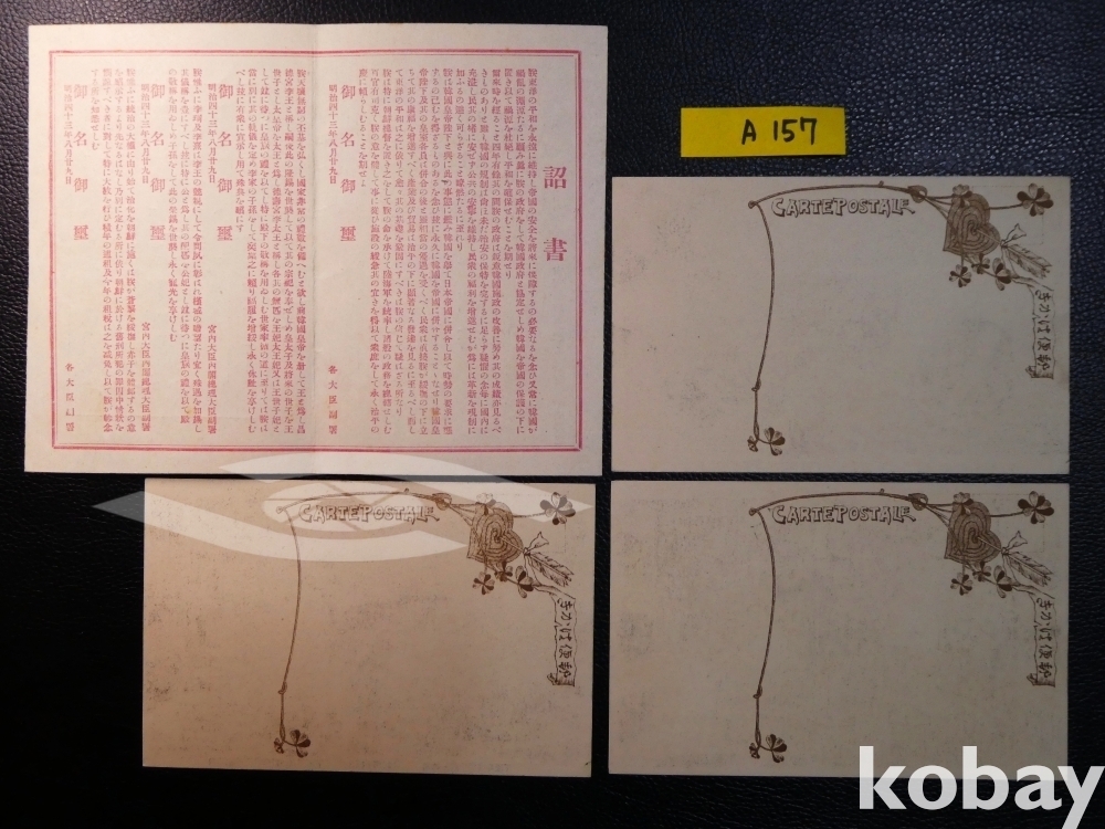 ▣근대한국엽서(진본): 1910년 한일합방 기념엽서 3매 완전 세트(원래 봉투 겸 설명서 포함).