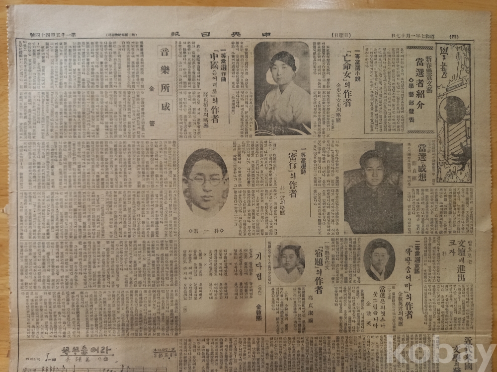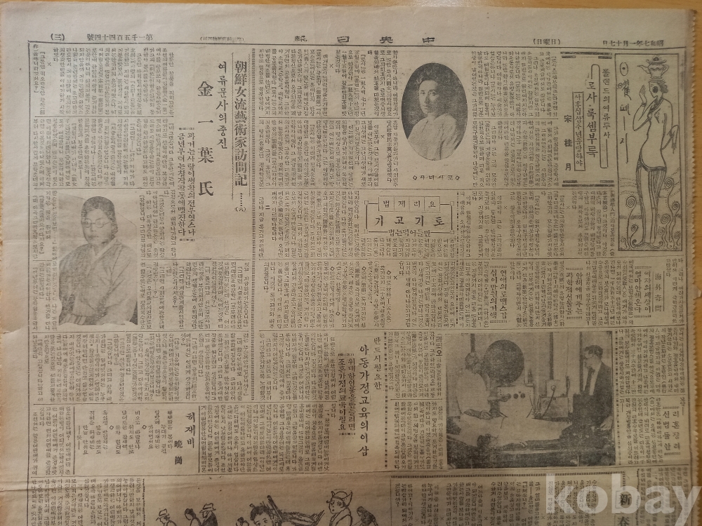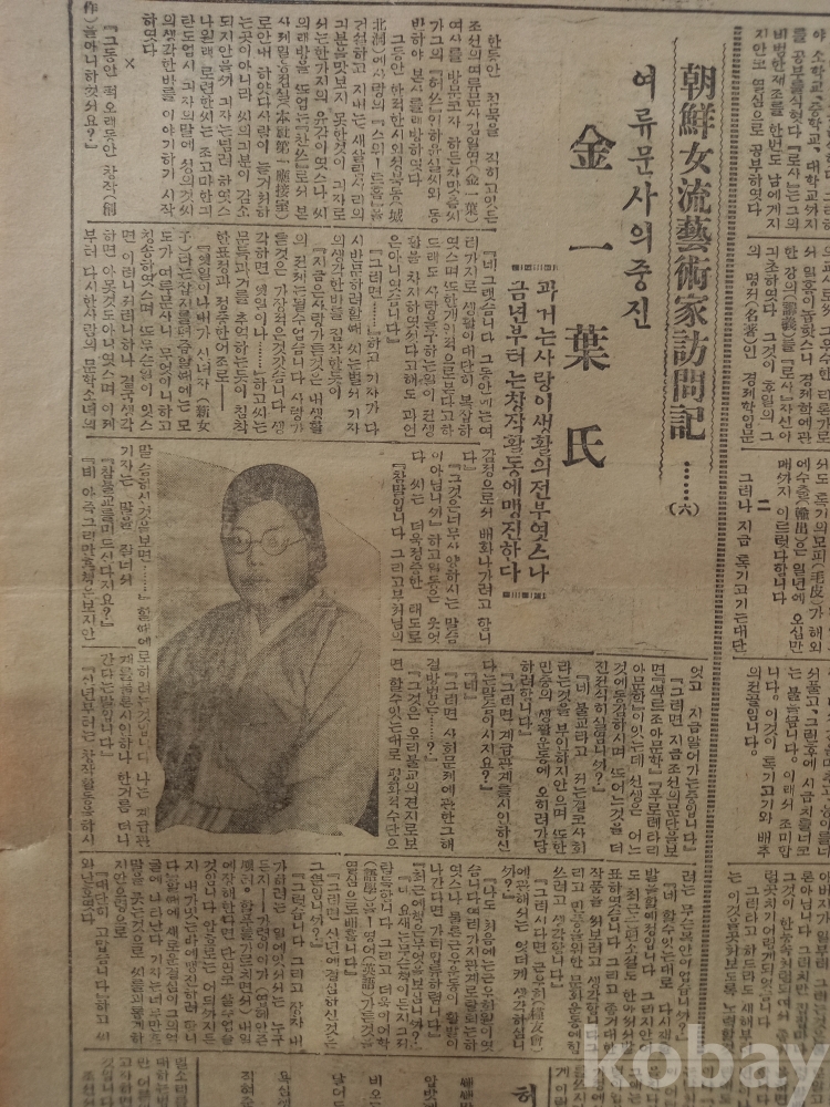 -상단 왼편에 <조선여류예술가탐방기(6)-여류문사의 중진 김일엽씨-, 과거는 사랑이 생활의 전부였으나 금년부터는 창작활동에 맹진한다>는 기사..