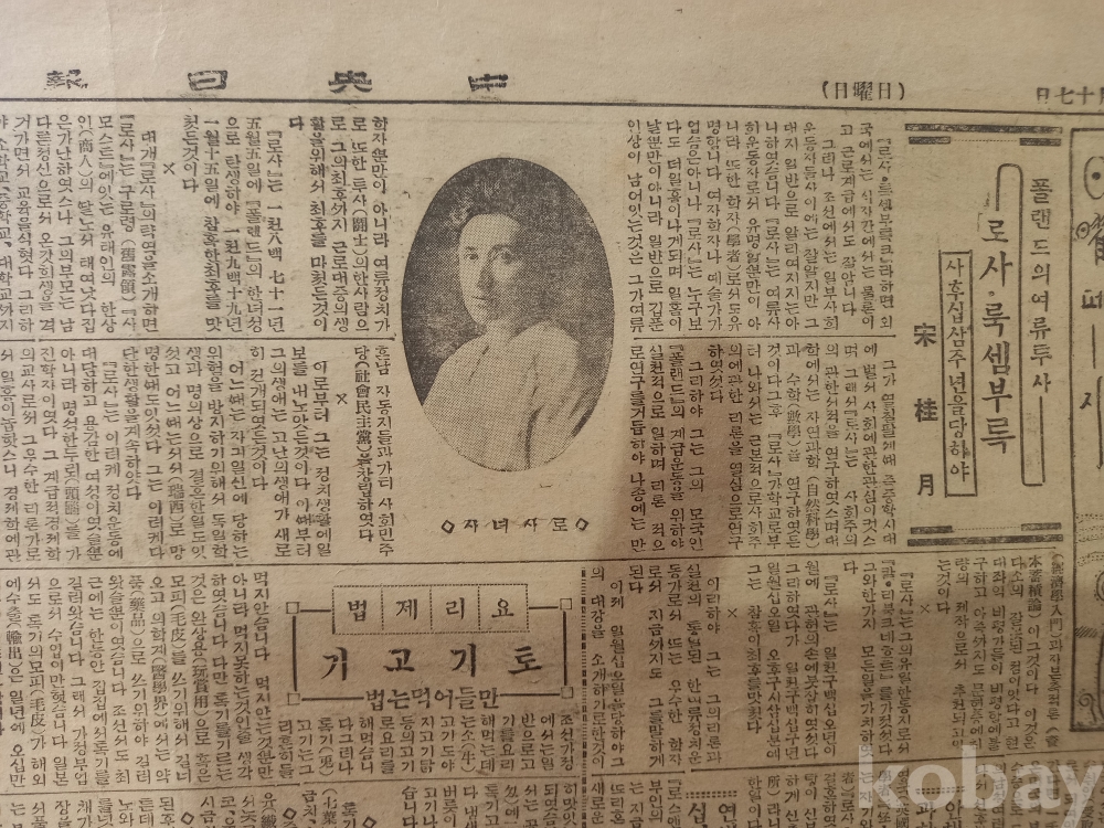 3면: 상단에 <폴랜드의 여류투사 로사 룩셈부록-사후십삼주년을 당하야>(안계월)라는 기사에서 사회주의 운동가 룩셈부르크의 일생을 서술함.
