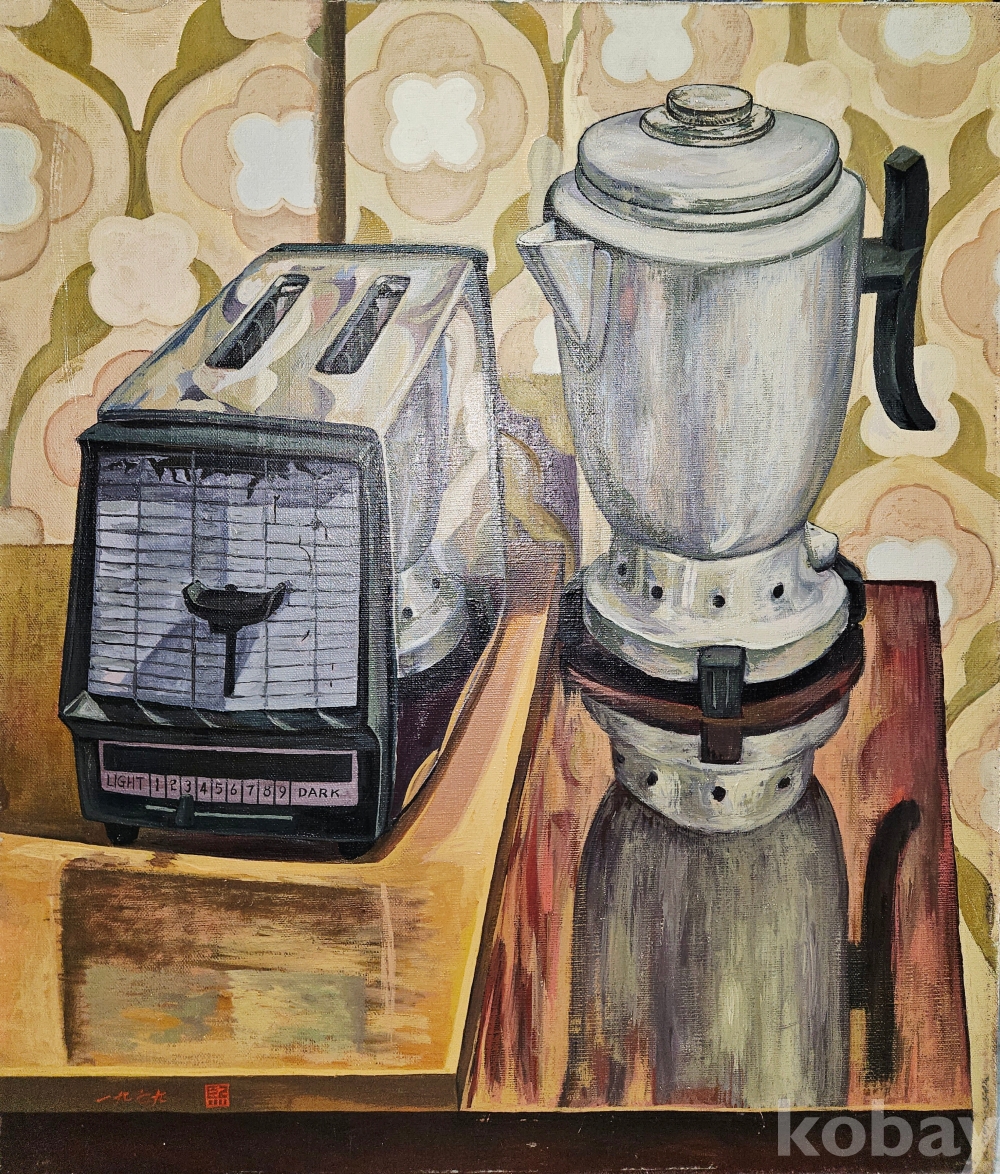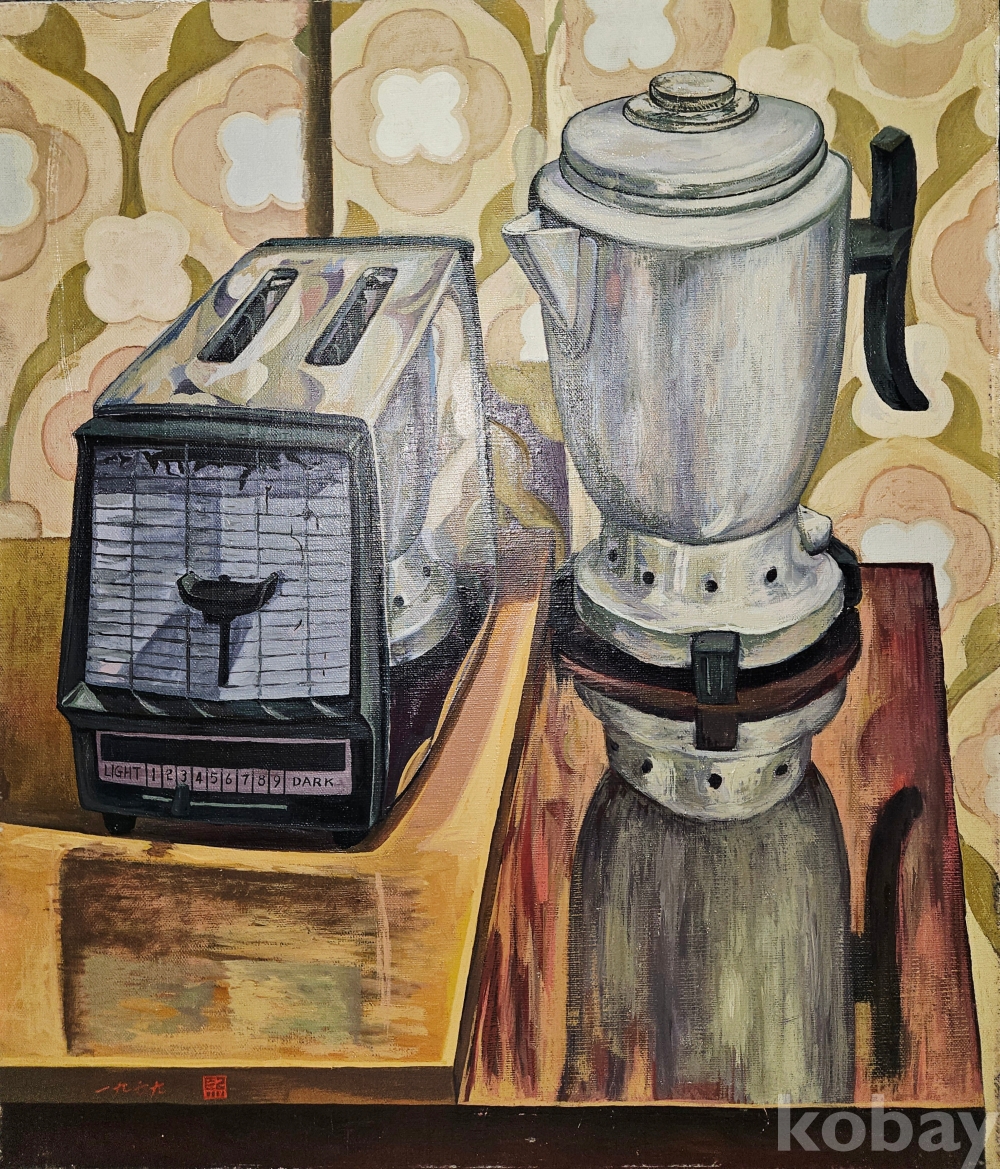 좌측의 토스터와 우측의 주전자를 균형감 있게 병치하면서도