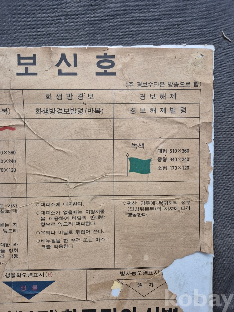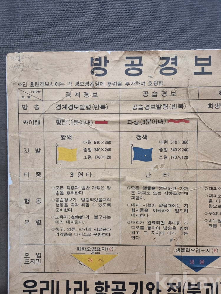 1970-80년대 방공 경보 신호및 행동요령에 관한 안내문 경보 신호에대한 설명 북괴항공기의 식별요령 표기 55*39