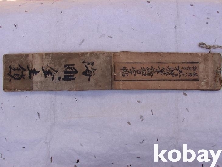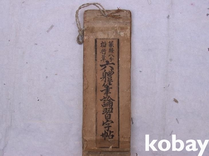▒ 표지에 <篆·隸·八分·楷·行·草 六體筆論習字帖 下>라는 제첨이 붙어 있으나 '첩'자 아래의 '하'자는 잘 보이지 않는다. 그 아래에는 나중에 붓으로 '해강 김규진'이라고 적어놓았다. 간기는 보이지 않는다.