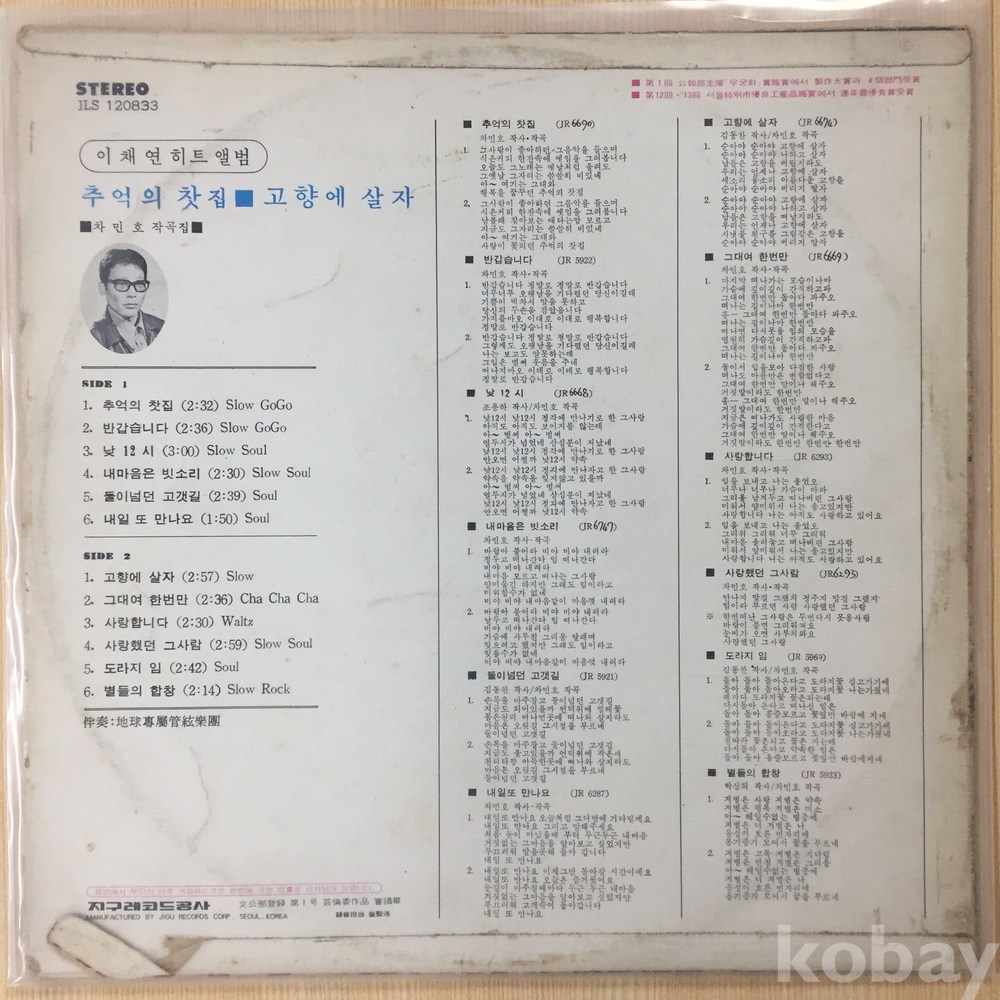 ⊙ 1974년 / 지구레코드 - JLS 120833