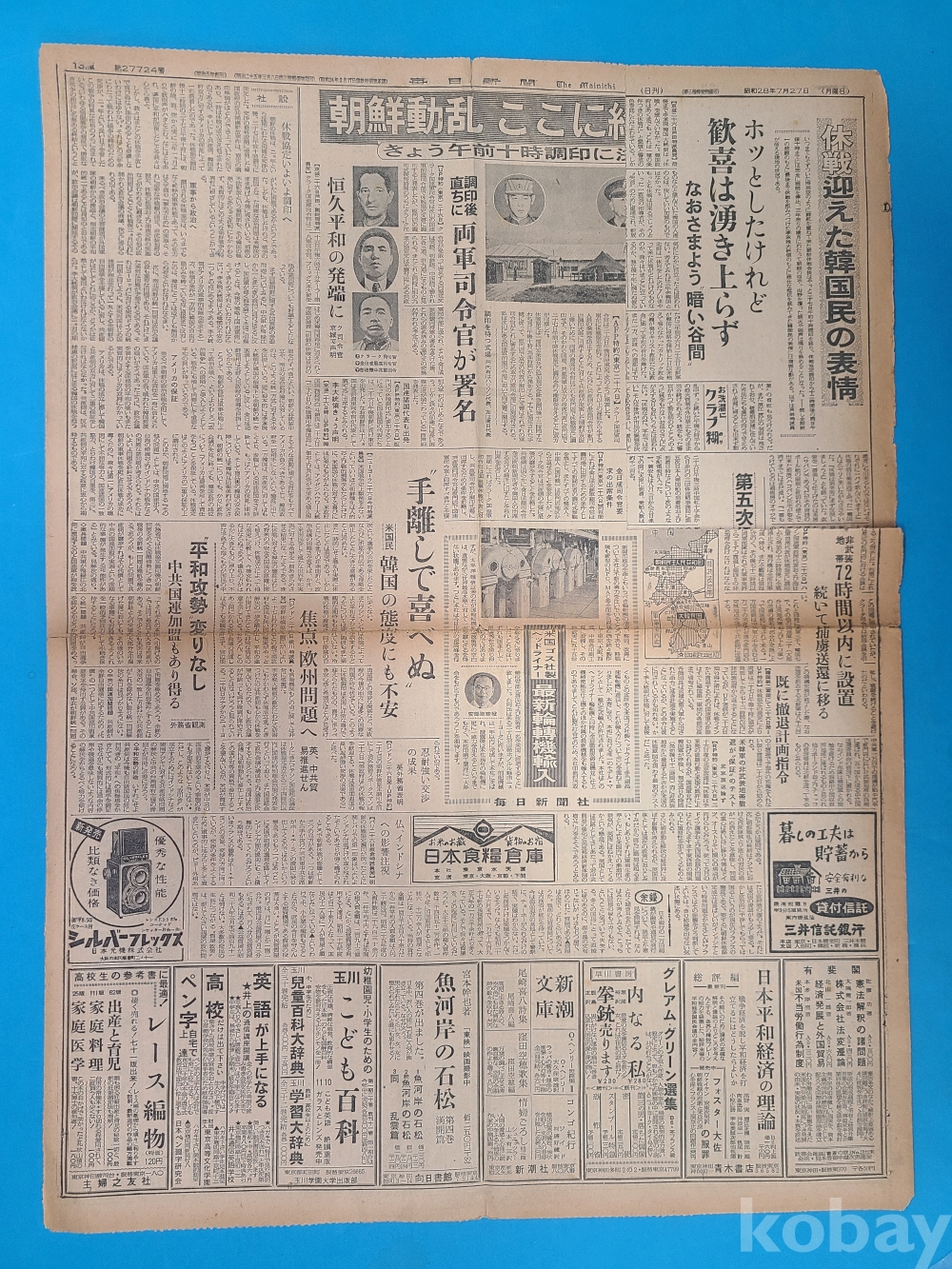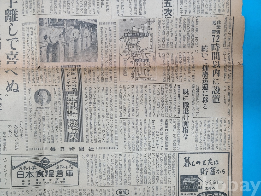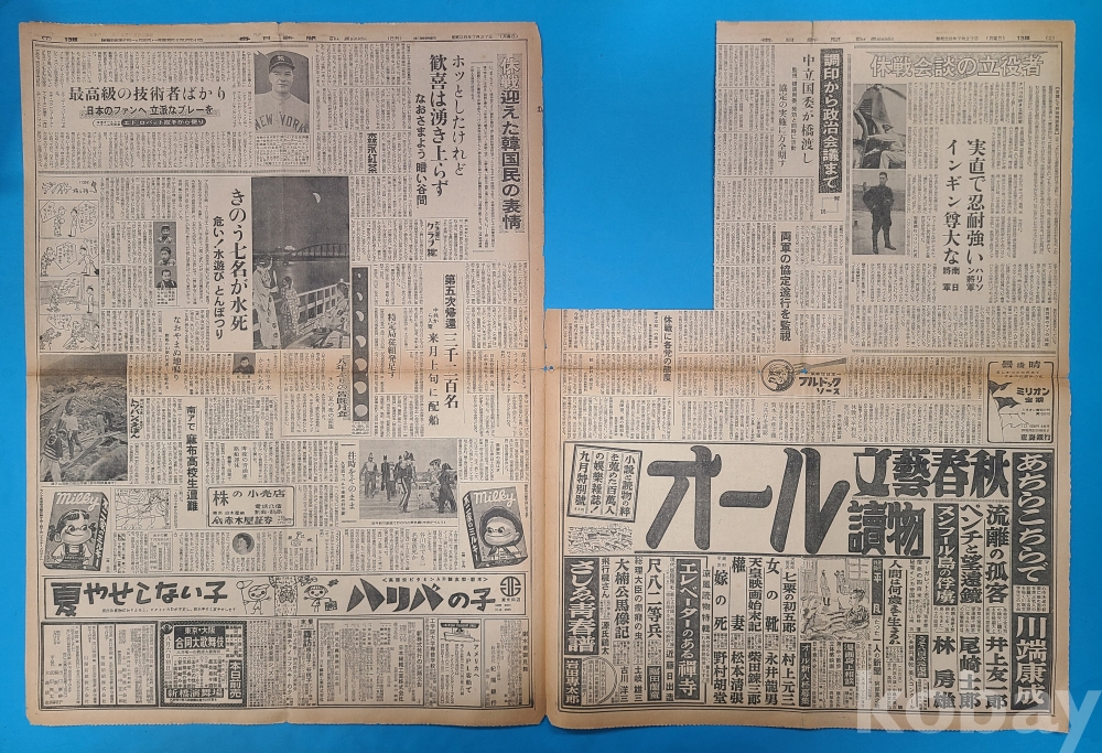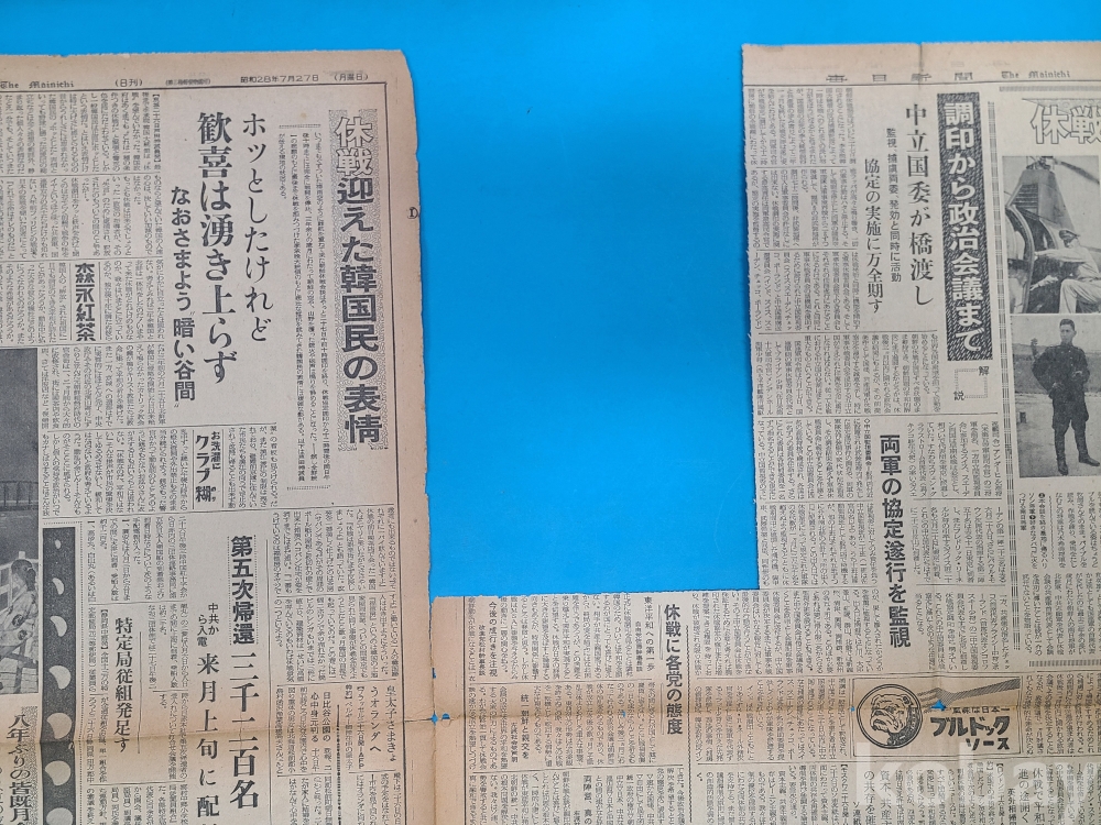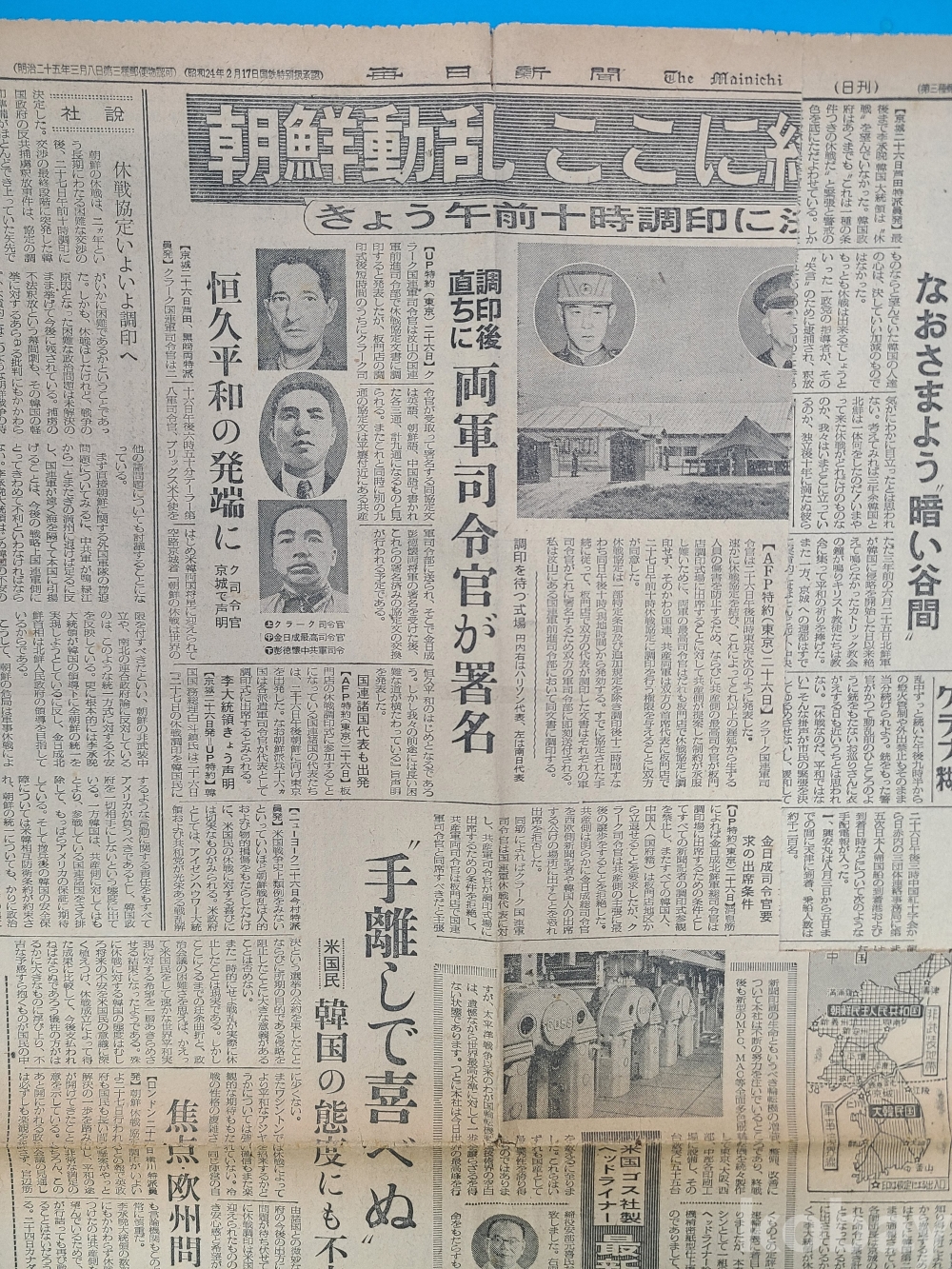 6.25전쟁 관련기사가 실린 일본발행 신문 [매일신문]/1953.7.27./오려낸부분 있음