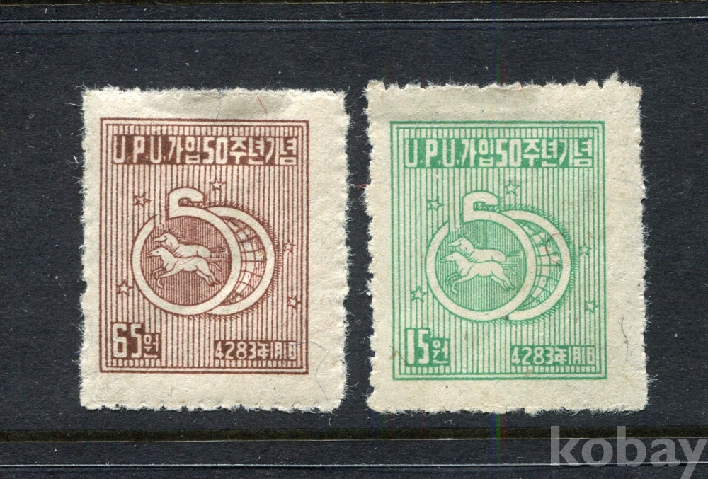 - [우표] 1950년 미사용 UPU가입 50년 2종 ( All MNH : Mint Not Hinged, 딋면 힌지자국없는 깨끗한 상태)