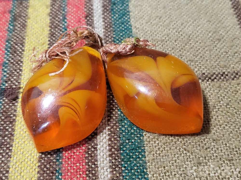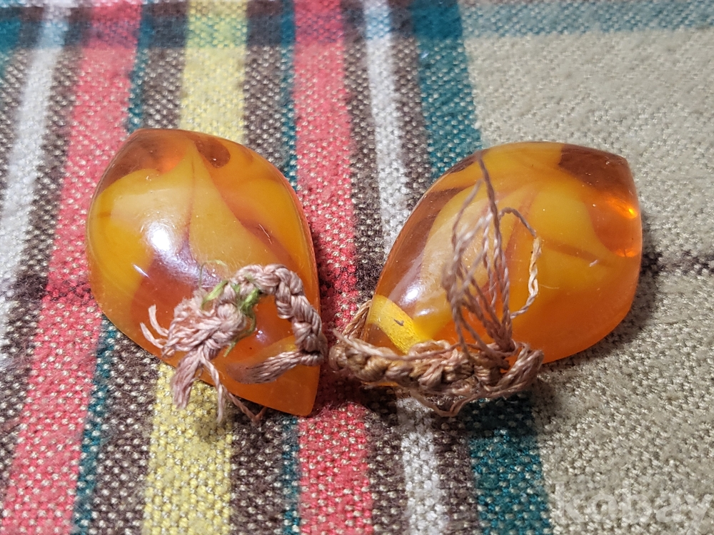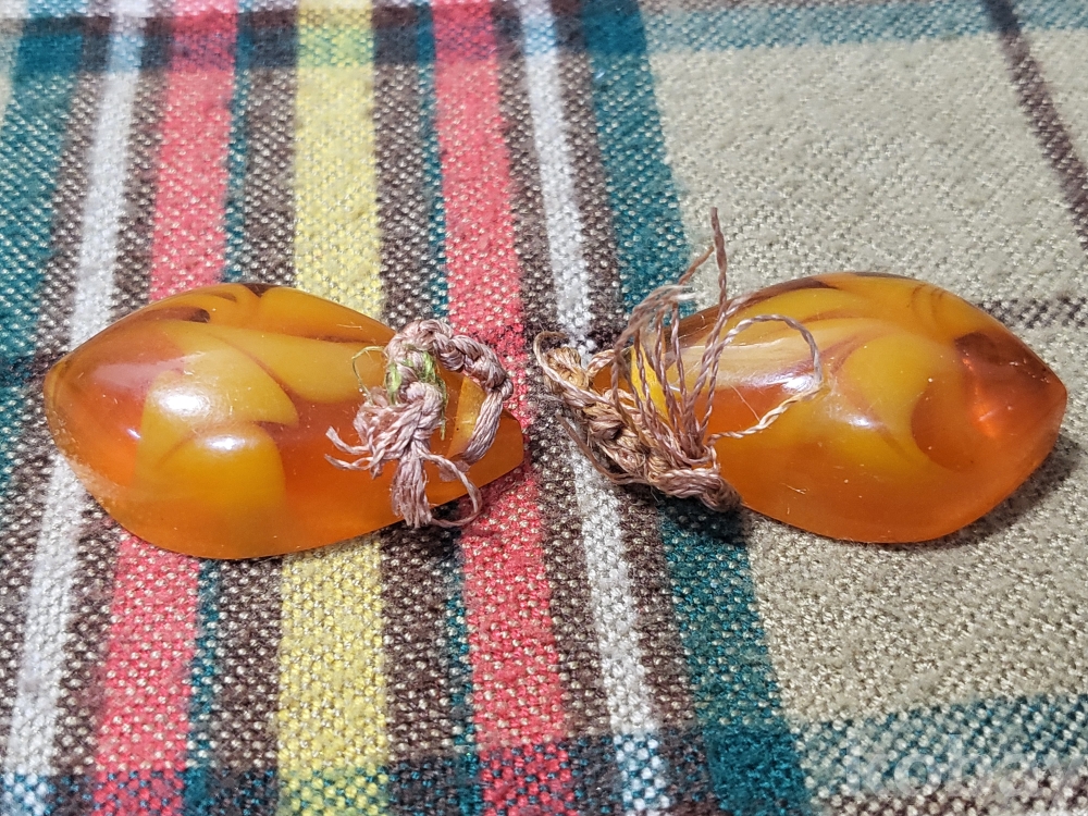 <투킴스> 오래된 전통 호박 마고자 단추 한쌍