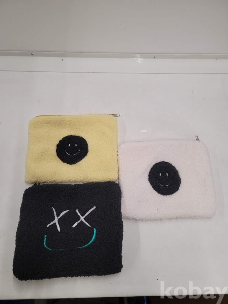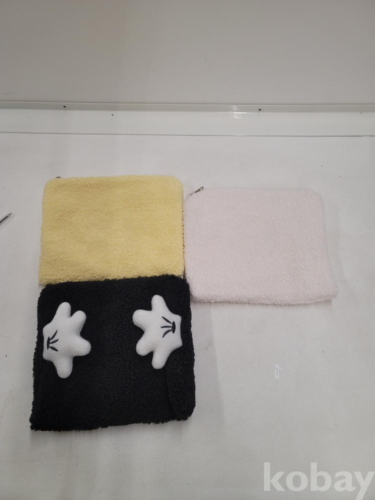 [*천원행복*] J - 1-0564 뽀글이 파우치 3개 (노랑 검정 흰색 , 22*19)
