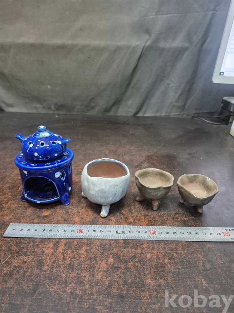 미사용 미니어쳐 향로1점 다육화분 미사용품3점 일괄