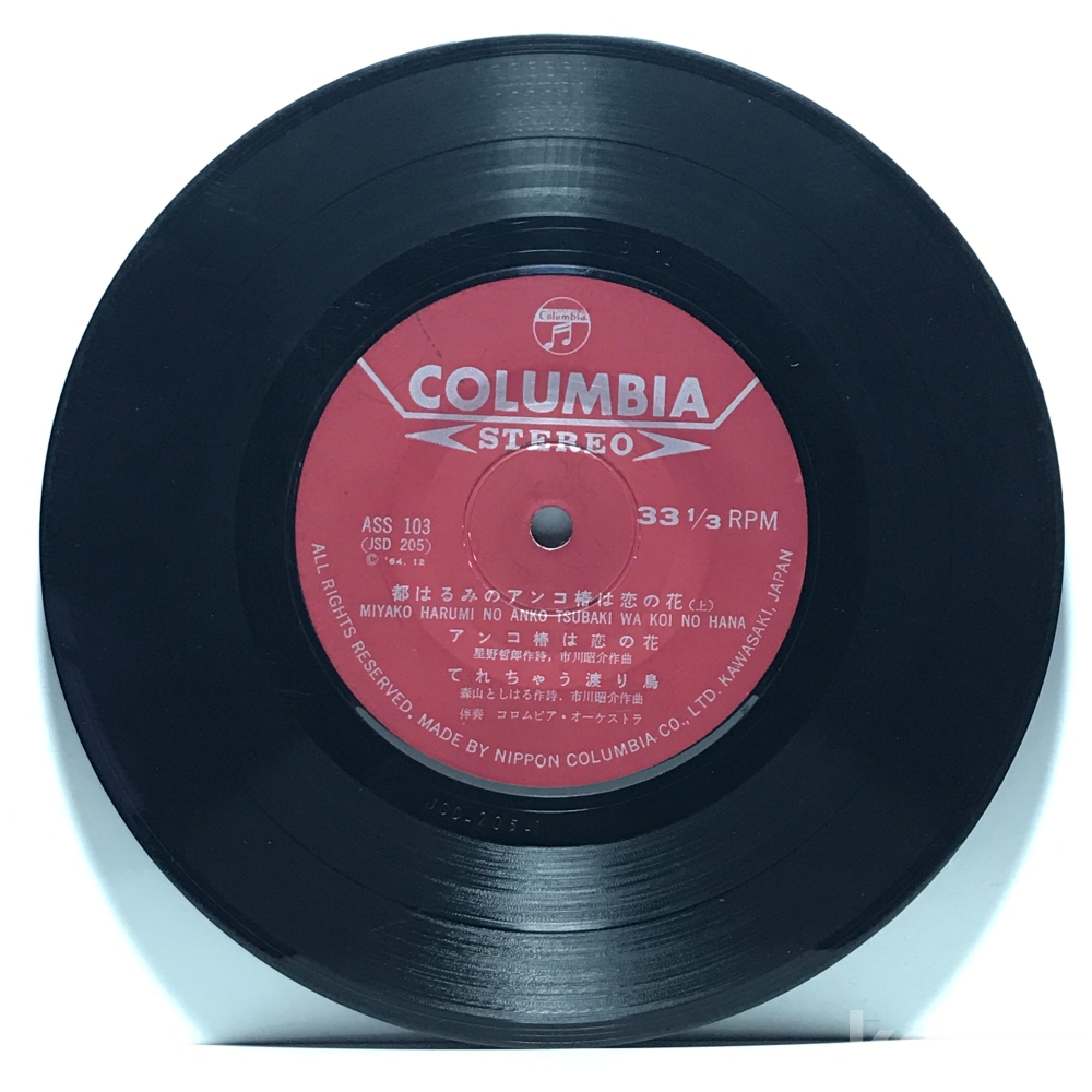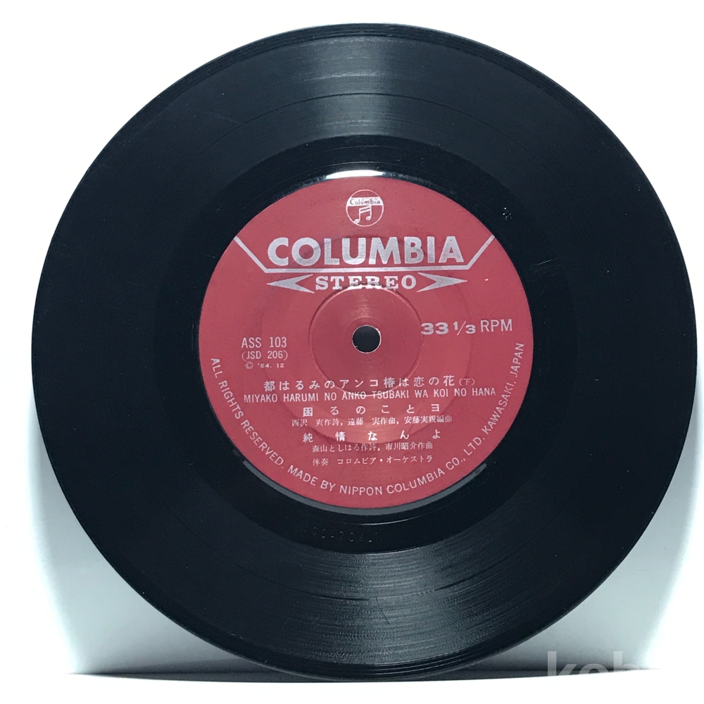 7인치 LP 83,640-133 MIYAKO HARUMI NO ANKO TSUBAKI WA KOI NO HANA 일본엔카 . 자켓 無 알판 VG+ 64년 수입반