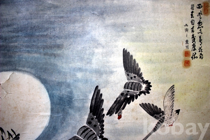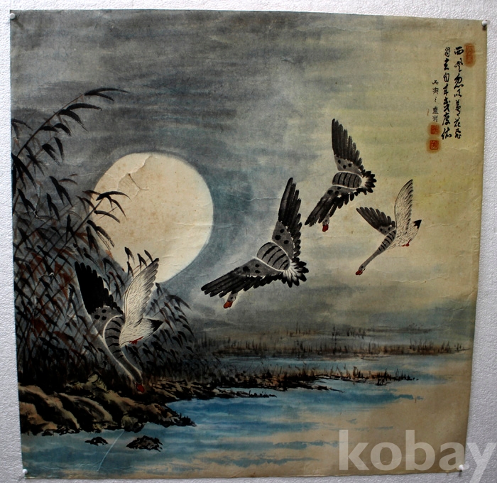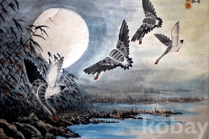 靈岩(영암) 이영근의 노안도 - 달밤 갈대밭의 청둥오리들