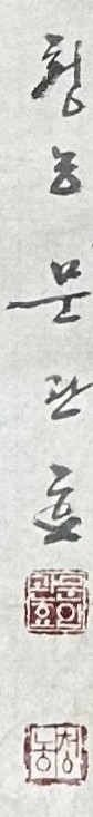 본 작품은 한글 시문 서체와 대담한 수묵 필획이 결합된 현대 서예 형식의 작품으로, 문자 서사와 회화적 붓질이 동시에 표현된 구성이 특징이다. 화면 중앙에는 강한 필압의 추상적 획이 배치되어 시각적 중심을 형성하며, 좌우 세로 배열의 한글 서체는 리듬감 있는 필선과 농담 변화로 공간감을 만들어낸다. 종이 바탕에는 자연스러운 보관 흔적과 생활 주름이 일부 존재하나 전체적인 조형미와 가독성에는 큰 영향을 주지 않으며, 족자 제작 또는 현대 인테리어용 서예 작품으로 활용 가치가 높은 작품이다. 대형 세로 규격으로 전시 효과가 우수하다.