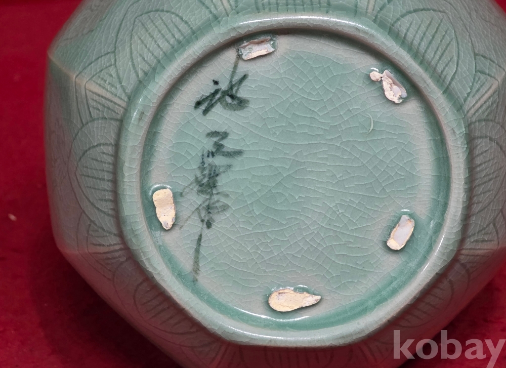 인간문화재 도암 지순탁 선생님의 흑백상감 인화문 주병 입니다