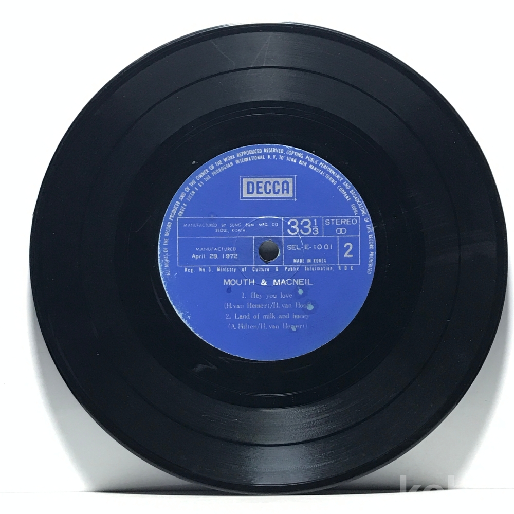 7인치 LP 83,640-132 MOUTH & MACNEIL - Hey you love . 자켓 無 알판 VG+ 72년 수입반