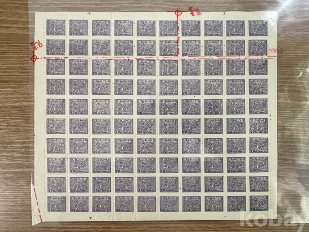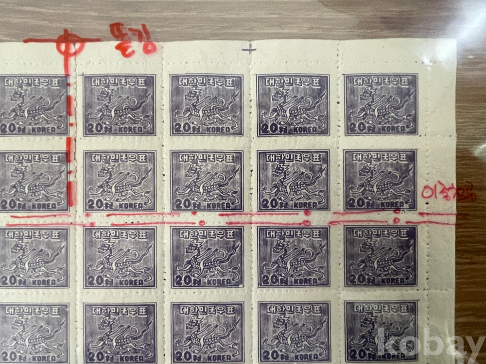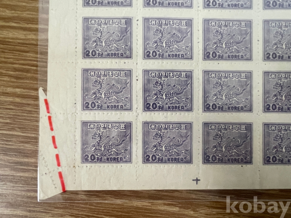 80 동양정판사 물결천공 20원 백호 전지 이중천공 및 코너 접힘천공