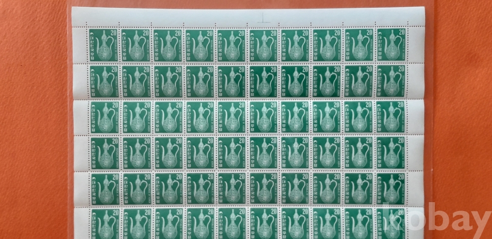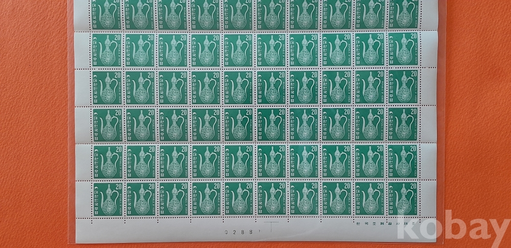 1969년 제1차 그라비어 보통 20원 청자수병 무광택지 100매 전지 입니다.