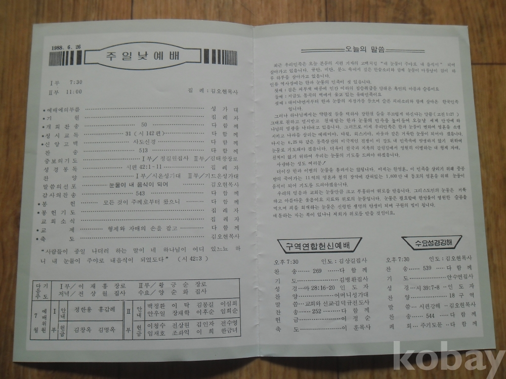 1988년 서울 장위중앙교회 주보