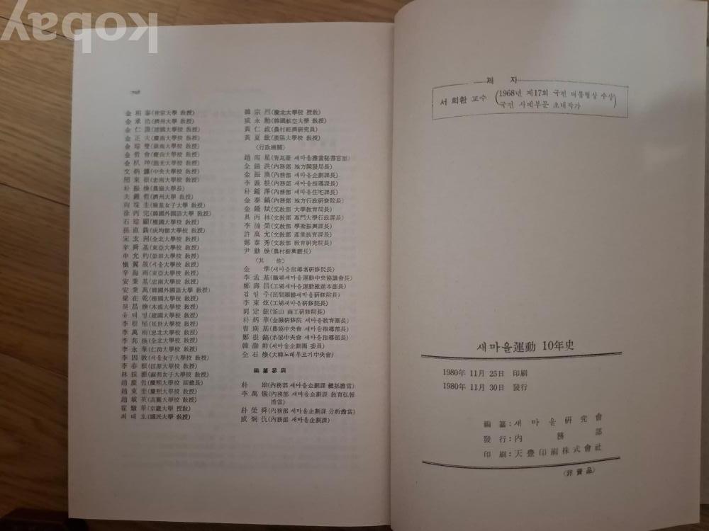 (을지로상회)기념도서/ <새마을운동10년사>1980년11월 /중요자료/비매품